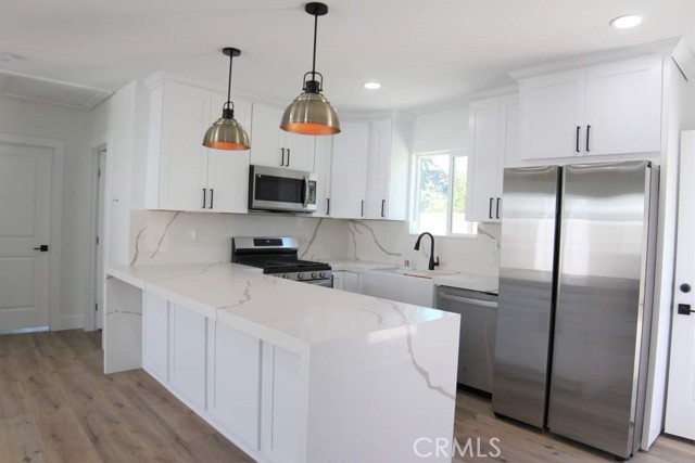 Rare opportunity to own two separate homes on one lot – a front SFR plus newly built ADU, ideal for multi-generational living or rental income. Both units are fully remodeled with modern kitchens and baths, updated plumbing, recessed lighting, and contemporary finishes throughout. Interiors feature open layouts, quartz countertops, designer cabinetry, stainless steel appliances, and upgraded flooring. Each unit offers its own private entrance and separate outdoor living space, providing flexibility and privacy. Property is secured with block wall fencing and features water-conserving turf for both units, low-maintenance landscaping, and ample concrete for parking and outdoor use. Turnkey condition with strong income potential – live in one and rent the other or lease both.
