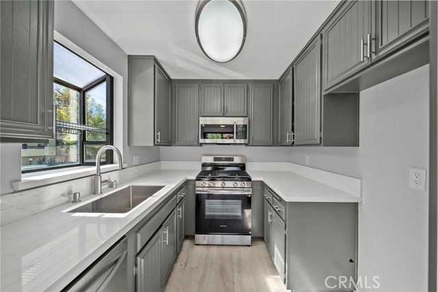 MUST SEE 3 BED CORNER UNIT CONDO IN SANTA CLARITA w/ AMAZING LOCATION w/ A VIEW... This home is PERFECT for either a first time buyer or investor for leasing. This property is in a prime location on the corner, only sharing 1 wall, overlooking the park and playground with zero obstruction from another building, and you just can't buy that! The unit was just remodeled with all new flooring throughout, hard flooring in all living areas, with carpet in the bedrooms. The kitchen features quartz counters with all new stainless steel appliances, front loading washer / dryer are included as well. The whole house has new plumbing fixtures, and upgraded LED efficient lighting. This unit is centrally located adjacent to fine dining, grocery stores, and schools. This home is ready to go and can be shown 7 days a week! Call for your private showing today...