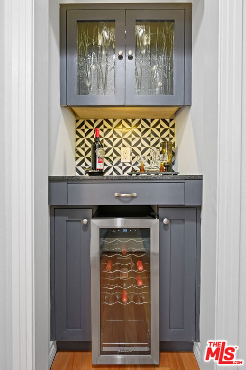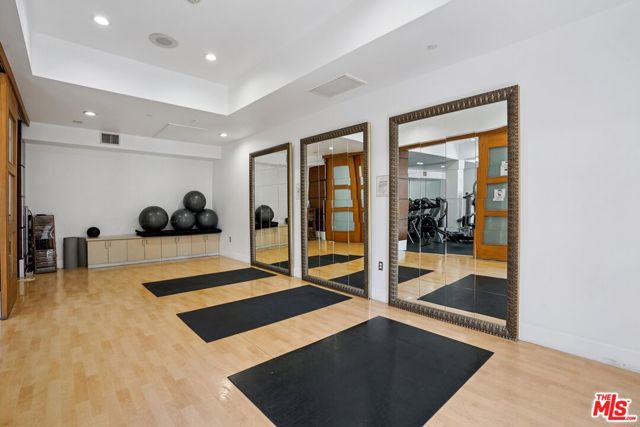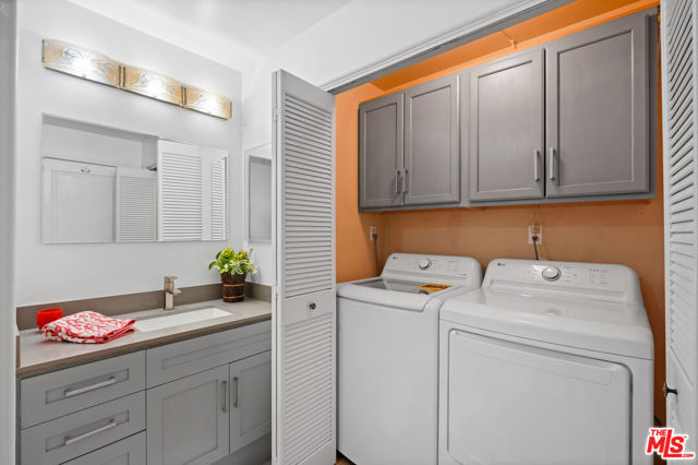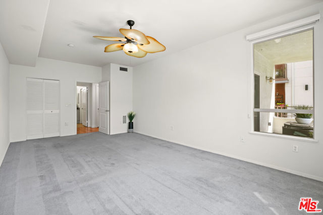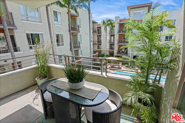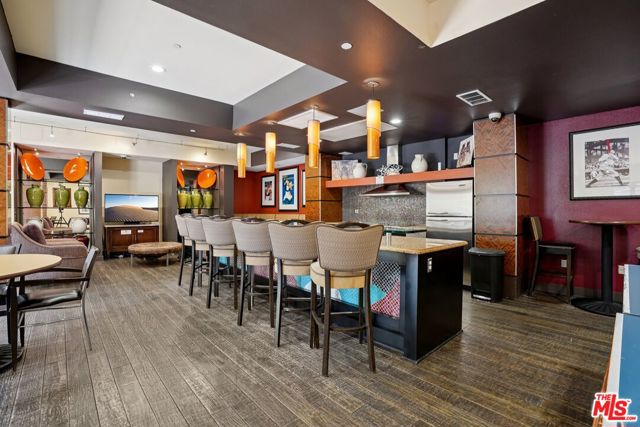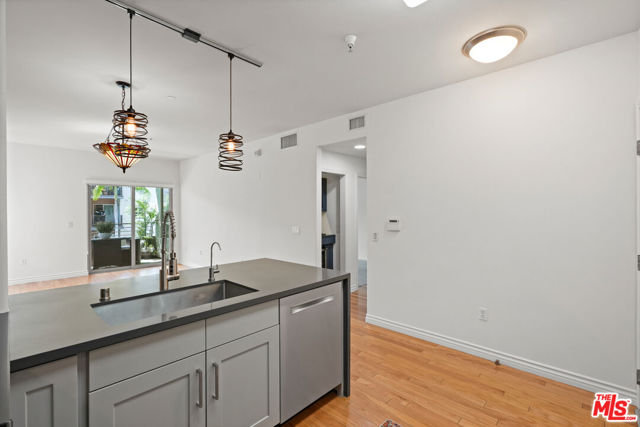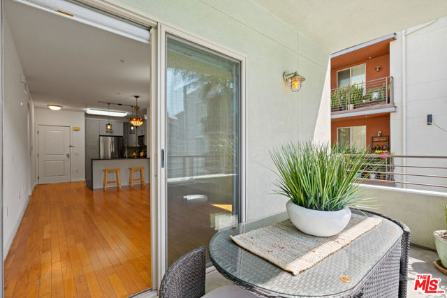 Warm wood floors and abundant natural light set the tone in this bright end-unit 1-bedroom. An extra window and a sliding glass door bring in light from multiple exposures, creating an open, airy feel throughout the living space. Step out to a covered balcony overlooking the palm-lined pool and spa courtyard, where soft breezes and greenery offer a peaceful backdrop. An updated kitchen features new cabinetry, including corner revolving shelves for efficient storage, a double-door refrigerator, and a bold black-and-white patterned tile backsplash that brings a graphic, modern touch. A double-basin stainless steel sink with a high-arc pull-down faucet is paired with a gray quartz countertop, which is lowered to create a more functional breakfast bar and prep space. A built-in beverage bar adds a nice custom detail. The oversized bedroom offers flexibility for a comfortable retreat and includes a walk-in closet. In-unit brand new washer and dryer with storage cabinets are conveniently located in the spacious bathroom. Enjoy Savoy's resort-style amenities, including a pool, spa, fitness center, rooftop deck, landscaped courtyards, and a 24-hour attended lobby. Located in the heart of Little Tokyo near the Arts District, it offers easy access to dining, cafes, and neighborhood favorites. Lease includes some utilities and 1 assigned parking space. Storage unit available for an additional monthly fee.
