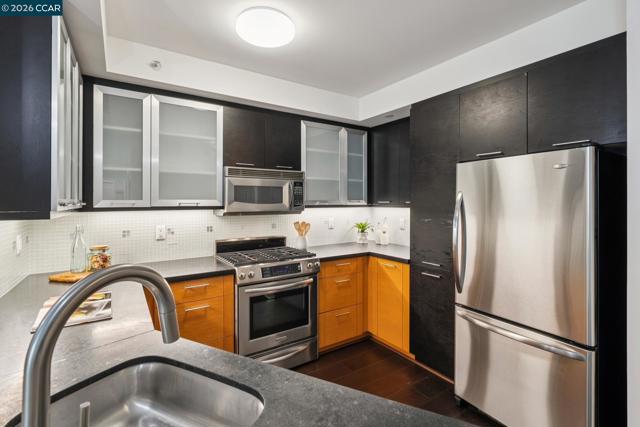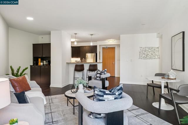 Welcome to 170 King Street, Unit 722—a bright and stylish 2-bedroom, 2-bath residence in one of South Beach’s most desirable full-service communities. Overlooking the resort-style pool and lushly landscaped courtyard with BBQ area, this home offers a peaceful, quiet retreat with expansive windows that fill the space with natural light. Thoughtfully designed for both comfort and functionality, the open-concept living, dining, and kitchen areas create an inviting space for everyday living and effortless entertaining. The chef’s kitchen features stainless steel appliances, a gas range, granite countertops, custom cabinetry with frosted glass uppers, and a convenient breakfast bar. Fresh paint, beautifully refreshed wood floors, and updated light fixtures add a modern, move-in ready feel throughout. The well-appointed layout includes a spacious primary suite with custom built-ins, an ensuite bath, and generous closet space, along with a second bedroom ideal for guests, a home office, or both. Additional highlights include in-unit laundry, one-car deeded garage parking, and a private storage locker. Residents enjoy access to an exceptional suite of amenities, including a heated pool and spa, fitness center, clubhouse, theater room, landscaped courtyard, BBQ areas, and a stunning rooftop deck with city and Bay Bridge views. Ideally located just steps from Oracle Park and minutes to Chase Center, Caltrain, Muni, BART, the Embarcadero, and some of San Francisco’s best dining and cafes, this home offers the perfect blend of comfort, convenience, and vibrant city living.