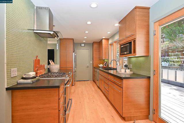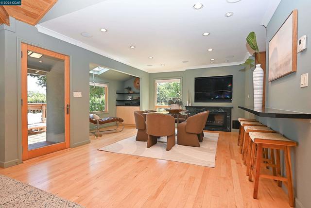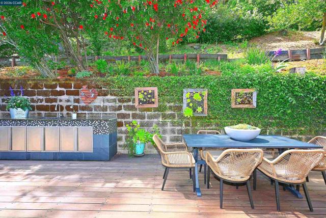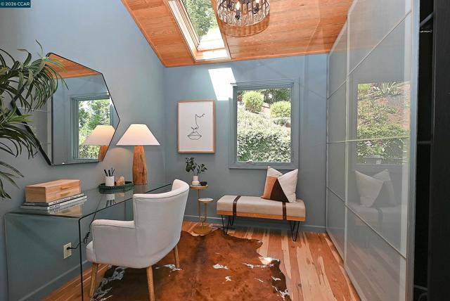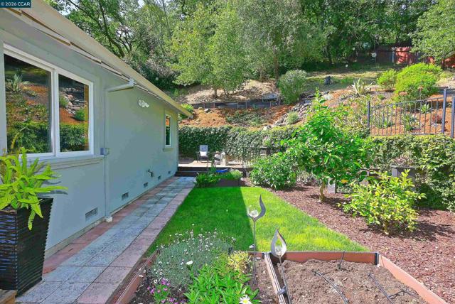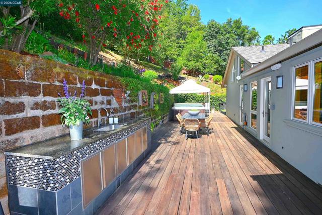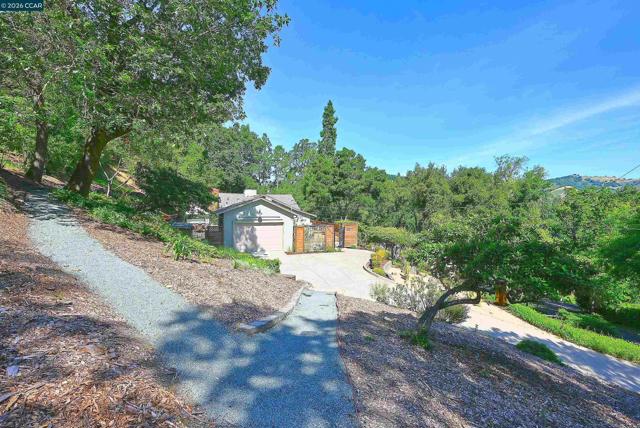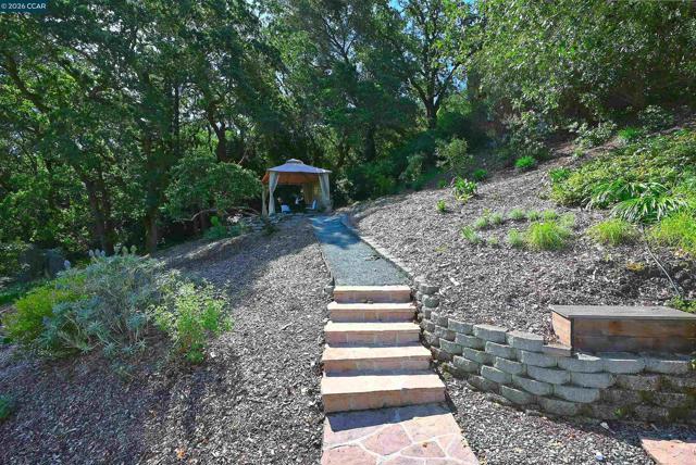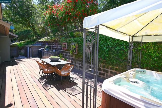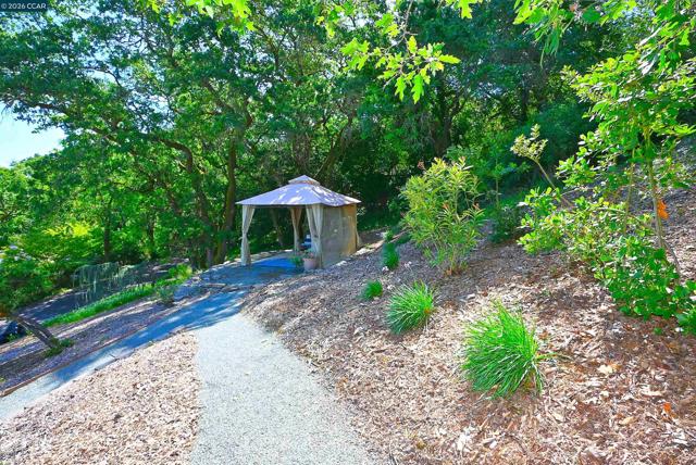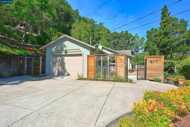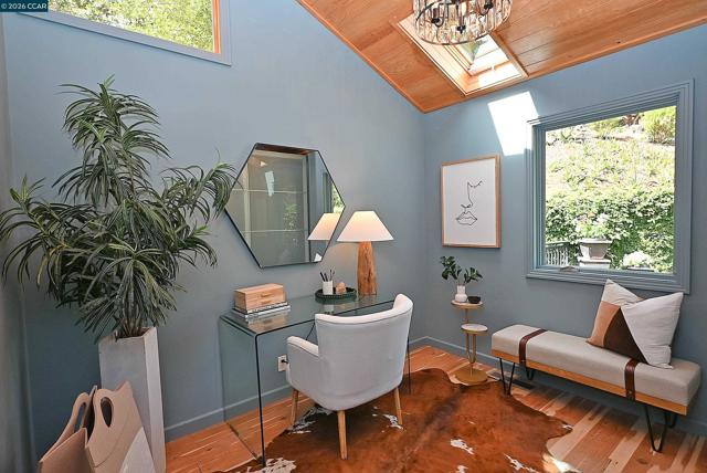 Tucked among the trees in Lafayette is this custom modern home with seamless indoor-outdoor flow, rebuilt from the studs in 2011 with new electrical, plumbing, a tankless water heater, and air conditioning. Vaulted wood ceilings, expansive windows, and open living spaces lead to large decks with tranquil tree views, creating ideal indoor-outdoor living with multiple sitting and entertaining areas. The kitchen features honed black granite counters, a gas stove, custom bamboo cabinets, and all appliances included. Public records show 1 bedroom and 1 bath, but an additional room functions as a second bedroom; it has a window and closet. The home includes tv surround sound and music speakers in all rooms, recessed lighting, and art spotlights. Fully landscaped grounds feature a spa on the back deck, a gazebo sitting area, a rock waterfall, a tool shed, a garden, and several private spaces to relax and enjoy nature. A new sewer line was installed in 2023, and the seller has plans for a potential additional home, adding flexibility and future opportunity. Check out Zillow Showcase for virtual floor plan, staging options and more! ** Open Tues (April 21) 10-1pm.**