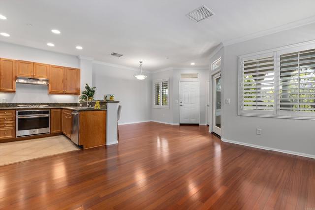 Welcome to this charming single-level condo in the desirable community of Sabre Springs! This bright and comfortable home offers the convenience of one-level living with a private one-car garage, providing both security and additional storage. Step inside to a light-filled open floor plan that creates a warm and inviting atmosphere, perfect for everyday living and entertaining. The living area flows seamlessly into the dining space and kitchen, making the home feel spacious and functional. Large windows bring in natural light and highlight the peaceful surroundings. Enjoy the comfort and convenience of easy indoor-outdoor living, ideal for relaxing after a long day. The attached garage adds valuable parking and storage space, while the well-maintained community offers a quiet and welcoming environment. Located in the heart of Sabre Springs, this home is close to shopping, dining, parks, and major freeways, making commuting and daily errands effortless.