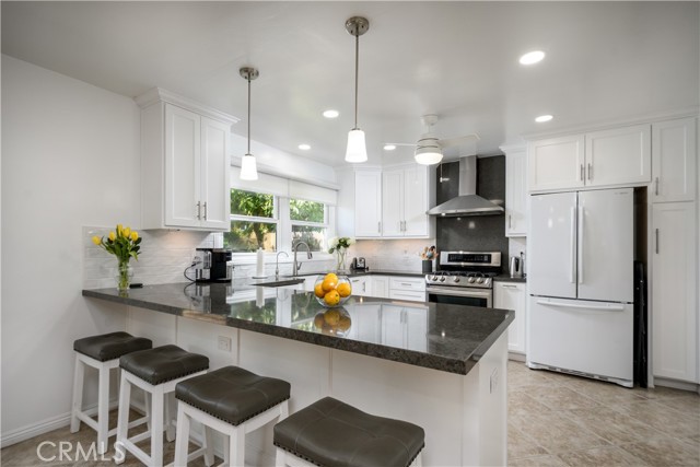 Welcome to 5571 Lockhaven Dr, a classic, traditional-style residence with colonial-inspired design and a welcoming covered entry. Set along a picturesque, tree-lined street, this home is framed by lush landscaping, a charming front porch, setting the tone for a home filled with timeless character and unforgettable moments. Inside, this 4-bedroom, 3-bath residence offers 2,593 sq ft of beautifully curated living space, enhanced by fresh interior paint. Original hardwood floors are featured upstairs, while the main level offers a combination of Pergo and tile flooring. Expansive windows bring in natural light, creating a bright, airy feel with seamless indoor-outdoor living. Designed for comfort and entertaining, the home features a formal living room with a gas fireplace, a dining area, and a separate sunlit family room. A distinctive glass door in the family room adds charm and creates an effortless indoor-outdoor flow. The kitchen serves as the heart of the home, featuring a large quartz island with built-in electrical outlets, a premium LG five-burner cooktop with convection oven, high-end appliances, and a butler’s pantry. The open layout flows seamlessly into the living spaces, ideal for everyday living and entertaining. A desirable floor plan includes one bedroom and a full bathroom on the main level, with direct access to a private side courtyard via a sliding glass door. Perfect for in-law quarters. Upstairs offers three bedrooms, full bath, and ensuite primary bedroom w/ his and her closets. Major systems have been thoughtfully maintained and updated over time, reflecting pride of ownership. The home also includes a whole-house water softener system and reverse osmosis filtration. The backyard features a covered patio, lush gardens, and mature fruit trees—including avocado, lemon, orange, and key lime. With a favorable orientation, the front enjoys morning sun, while the backyard offers more comfortable, shaded afternoons and evenings. The outdoor spaces offer charm and functionality, with a welcoming front porch and ample backyard ideal for play, pets, and everyday enjoyment. Additional highlights include custom garage doors and RV parking. Ideally located near Los Coyotes Golf Course and just moments from desirable K town shopping and dining, the home is also within the attendance area of Sunny Hills High School, recognized for its strong college preparatory focus, honors curriculum, and Advanced Placement (AP) programs.