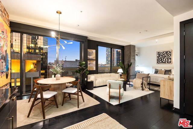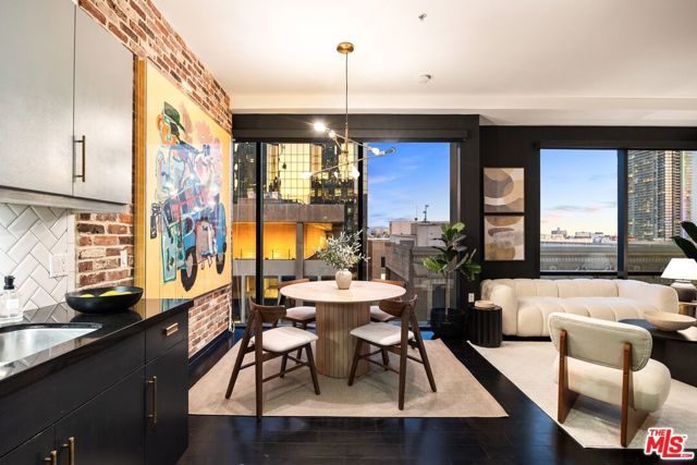 Available now for immediate occupancy. Nestled high on the 14th floor, the highly desirable end unit is a harmonious blend of modern elegance and urban sophistication. True urban dwelling with views of the bustling city down below. The open floor plan loft boasts floor-to-ceiling glass walls, tall gallery walls, 12-foot ceilings and warm dark hardwood floors. 2 unique brick accent walls and an East facing wall painted black. Natural light emanates throughout. The sleek kitchen features blue color cabinetry, white backsplash, granite countertops, stainless steel appliances and a new Bosch dishwasher. The bathroom features a soaking tub. Washer/dryer are included! 1 unassigned parking space included (no extra fee) in the parking garage - exclusive to the Hope Street Lofts, with an elevator bank giving direct access to the 11th floor as well as the lobby. Hope Street Lofts is a boutique art deco condo building with only 80-units. Building amenities include 24/7 security, front desk concierge, a fitness center, gameroom, a rooftop with panoramic Downtown views, a helicopter pad, sundeck, barbecue grills and a chic wet bar. The rooftop was recently redone and new furniture has been ordered. Located in the Financial District and directly above the 7th Street Metro Station. Access the best of urban dwelling at your doorsteps! Enjoy the best of food and beverages at the trendy Javiers or Bottega Louie. Near michelin star restaurants, world class museums, concept coffee shops and endless entertainment options. Across the street from the Bloc and Joeys. Only 2 blocks from Whole Foods and the Broad Museum is a stone's throw away. Experience a night at the LA Opera or a concert at the Walt Disney Concert Hall - only 4 minutes away. Attend a Lakers game at Crypto Arena. Entertain family and friends at LA Live. Easy access to freeways and public transportation. Truly, the best location in Downtown L.A. 1st months rent + security deposit due at move-in. $500 security deposit due to HOA to reserve elevator for move-in. Tenant to pay $45 credit and background check fee. Good credit is a MUST. Landlord pays: Water, trash and gas. Tenant pays: cable, internet, and electricity. Pets: Call. Renters insurance required. Schedule a tour today.