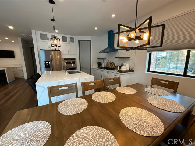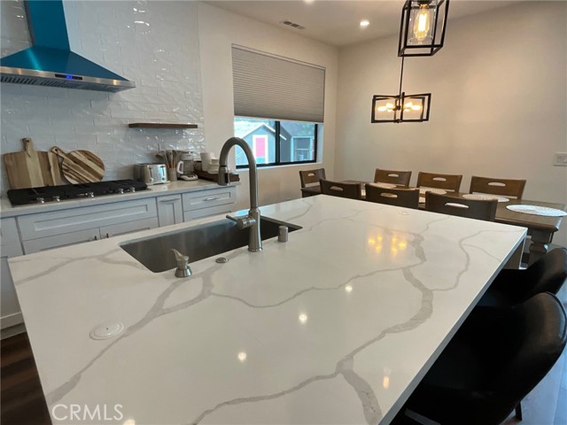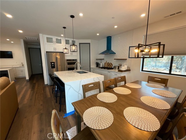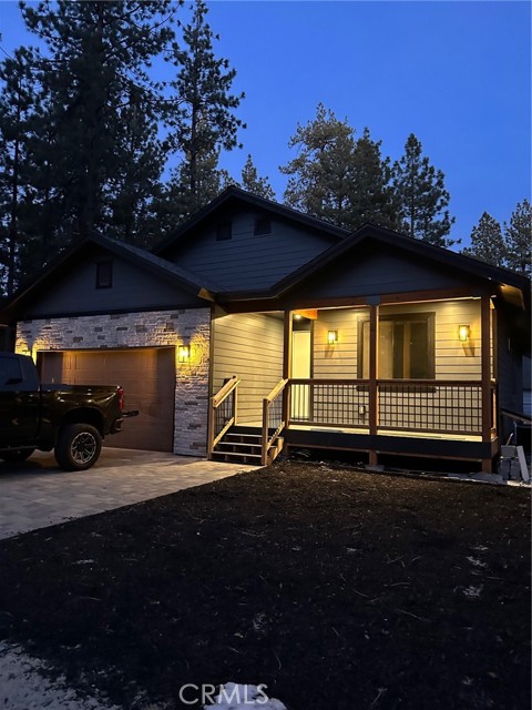 Welcome to a brand-new 2025 modern luxury retreat in the heart of Big Bear City offering 4 bedrooms, 3 bathrooms, and approximately 1,645 sq ft of thoughtfully designed living space. This stunning home was built to stand out, combining contemporary architecture with warm mountain charm and delivering a true turnkey experience ideal for both personal enjoyment and investment. Inside, you’ll find an expansive open-concept floor plan featuring Level 5 smooth wall finishes, wide-plank luxury vinyl flooring, recessed LED lighting throughout, and a beautifully designed chef’s kitchen complete with quartz countertops, a large center island with bar seating, stainless steel appliances, and a custom statement range hood that anchors the space. The living and dining areas flow seamlessly, creating the perfect environment for entertaining, relaxing, or hosting guests. Spacious bedrooms and three fully upgraded bathrooms provide comfort and flexibility for larger groups, while the overall layout is optimized for modern living. Step outside to enjoy a covered front porch and a generous rear deck surrounded by mature pine trees, offering the ideal setting for year-round mountain living. The property also features a finished 2-car attached garage, a premium paver driveway, solar with battery backup, central HVAC for heating and cooling, a Rinnai tankless water heater, fire sprinkler system, and a 1-year home warranty for added peace of mind. Located just minutes from Big Bear Lake, ski resorts, hiking trails, and local dining, this home is perfectly positioned as a full-time residence or luxury getaway. Rarely does a brand-new, fully modern, and move-in-ready cabin of this caliber become available in Big Bear—this is a standout opportunity you don’t want to miss