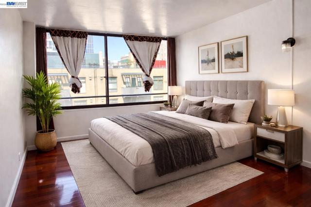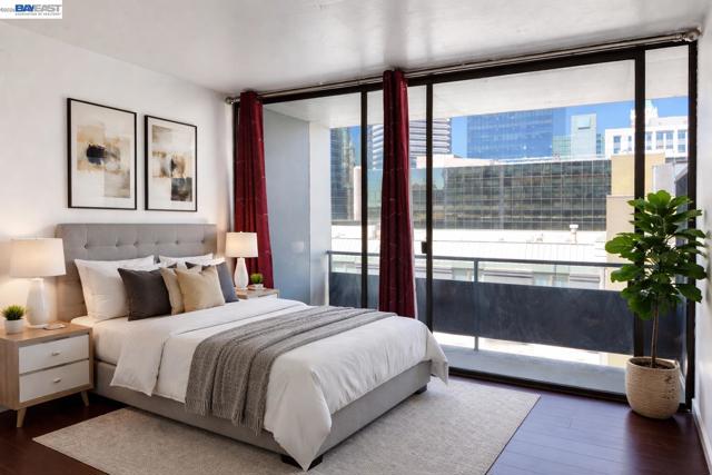 Great opportunity to live in this convenient location in Oakland's vibrant Chinatown. Spacious patio with sliding glass doors off the living room to make your own private garden oasis. Close to 12th street BART, public transit, Jack London Square, Lake Merritt, local shops and restaurants. Low HOA fees that includes 24/7 front door security, professional onsite management water, gas, sewer, garbage service and laundry facility onsite. Unit has one assigned gated parking space fits 2 cars. The best of urban living! Views: Downtown