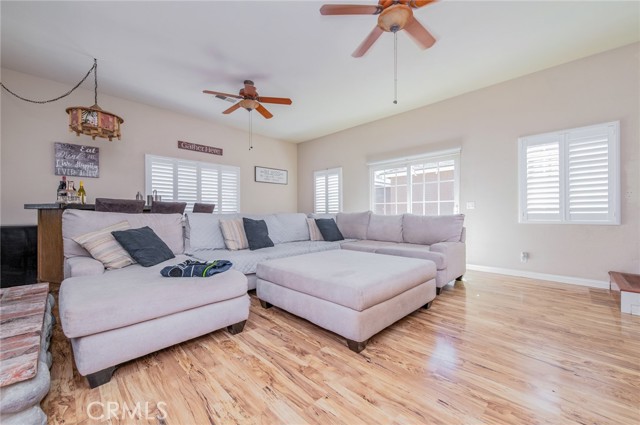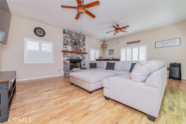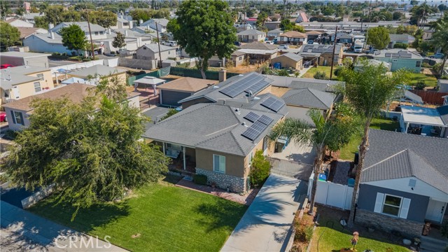 Welcome to this cozy single-story solar equipped residence in La Habra, offering a spacious and functional layout. This home provides 1,842 square feet of comfortable living space, featuring 3 bedrooms and 2 full bathrooms, all situated on a generous 7,715 sq. ft. flat lot. The home's design centers around an open floor plan that effectively connects the bright living room, kitchen, and dining area. The kitchen is well-equipped with granite countertops, featuring a 6-burner cooking range, a stainless steel sink and dishwasher, and a walk-in pantry for additional storage. Walk through the hall to discover a spacious family room with a cozy fireplace in the back, perfect for additional relaxation at home. Interior finishes include durable laminate wood flooring throughout most living spaces, modern recessed lighting, and classic wood shutters in the living room, family room, and kitchen. The property features an individual laundry room and a detached 2-car garage accessible via a secure private gate. The exterior provides a beautiful set-back front yard and a low-maintenance backyard. A detached storage unit in the back can be perfectly utilized as a dedicated home office, studio, or professional workspace. In addition, the home is equipped with solar panels for reduced utility costs. This home also offers an excellent financial advantage: access to an Assumable VA Loan with a highly competitive low interest rate, providing a compelling opportunity for the next owner in the current market. Desinated to Fullerton Joint union high school distrct at high school level, with excellent high school choices.