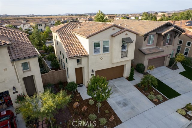 Welcome to your slice of Wine Country paradise—where comfort, style, and privacy come together in this beautifully upgraded TURNKEY 3-bedroom, 2.5-bath home with a spacious loft in the highly desirable Callistoga at the Promontory community. Backing to a peaceful natural hillside and showcasing a stunning landscaped backyard, this move-in-ready home offers the perfect blend of tranquility and indoor-outdoor living. This exceptionally well cared for 1,864 sq ft residence, built in 2018, features “Cortona Argamasa” laminate flooring, berber carpet, plantation shutters, ceiling fans, and custom solar shades. The open-concept layout seamlessly connects the kitchen, dining, and living areas, while oversized sliding glass doors fill the space with natural light and highlight the backyard retreat. The kitchen is a standout with white shaker cabinetry, granite countertops, stainless steel appliances, pendant lighting, and an oversized island with seating. Upstairs offers spacious secondary bedrooms, a shared bath with dual sinks and upgraded “Powder to Piedrafina” counters, and a private primary suite with dual vanities, soaking tub, and separate shower. The versatile loft provides ideal flex space for an office, guest room, or media area. An upstairs laundry room adds convenience with “White Matte Cultured Marble” counters, shaker cabinetry, and an upgraded Maytag washer and dryer. Additional highlights include a Nest thermostat, Rinnai tankless water heater, LifeSource water filtration system, Aladdin Connect garage access, epoxy garage floors, overhead SafeRacks storage, rain gutters, fresh paint, and a Sunbrella front awning. The professionally landscaped backyard (2025) features new irrigation, lush privacy plantings, an oversized color-stamped concrete patio, alumawood cover with ceiling fan and lighting, and a wraparound stone wall—perfect for relaxing or entertaining. Ideally located in Temecula Valley Wine Country, home to nearly 50 wineries, and just minutes from Old Town Temecula’s popular dining, shopping, breweries, and year-round events. Enjoy nearby parks, scenic walking trails, and a welcoming community atmosphere, all within a highly regarded school district and close to convenient shopping and medical facilities. This home truly delivers the perfect blend of comfort, convenience, and elevated Southern California living.