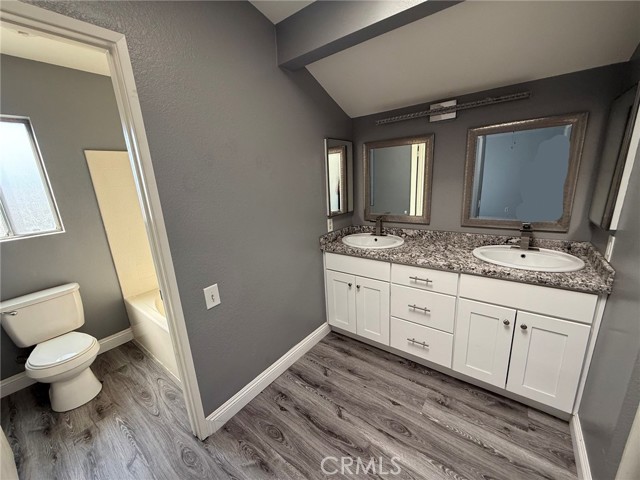 Menifee Lakes BEAUTY ! 4 Bedrooms + 3 Bathrooms. Vaulted ceilings in the Formal Living/Dining Combo Room - light & bright! One Bedroom and Bathroom downstairs - perfect for an aging parent or as a home office. The Kitchen has been completely remodeled with White Cabinets and Beautiful Granite Countertops. Bathrooms also have new cabinets and Granite Counters. Newer carpet throughout! SO GORGEOUS! Enjoy ALL the amenities in Menifee Lakes: walking/biking trails around the Lake, Community Pool & Water Slide (seasonal), Catch & Release Fishing, Playgrounds & Seasonal Activities for the Family. (Sorry NO PETS)