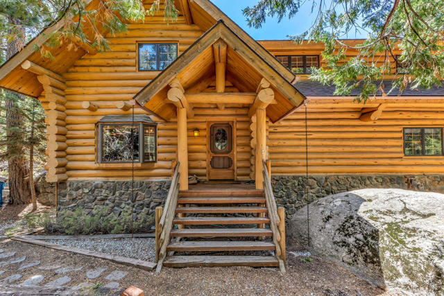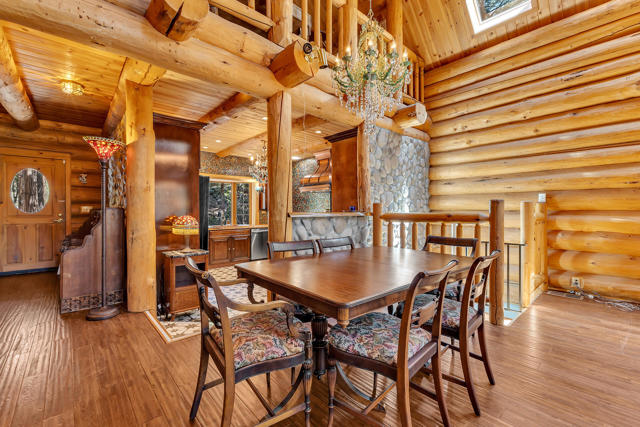 Tucked away on a quiet cul-de-sac and backing to the National Forest, this expansive log cabin offers rare privacy across three lots, including two buffer parcels. Soaring vaulted ceilings and walls of windows bring the outdoors in, showcasing serene forest views and filling the home with natural light. Warm hardwood floors flow through the main living spaces, complemented by a stunning granite fireplace and access to an expansive entertaining deck.The thoughtfully designed kitchen features gourmet appliances, a distinctive tile backsplash, and beautiful live-edge counters. The main level includes a spacious primary suite with a luxurious bath & direct deck access, along with a convenient half bath and generous storage. Upstairs, a second primary suite offers a spa-like bath and walk-in closet, plus a loft overlooking the living room-ideal for an office, lounge, or potential bedroom. The lower level provides flexible living with a separate entrance, living area, screened porch, full bath, storage, and partial kitchen-perfect for guests or extended stays. Extras: fenced yard for pets, carport, & ample parking, this property is a peaceful mountain retreat where privacy & nature meet!