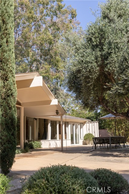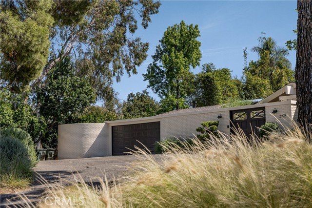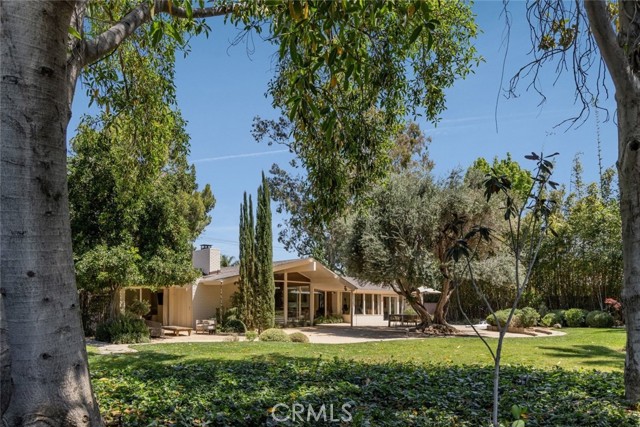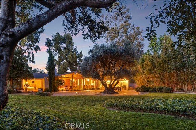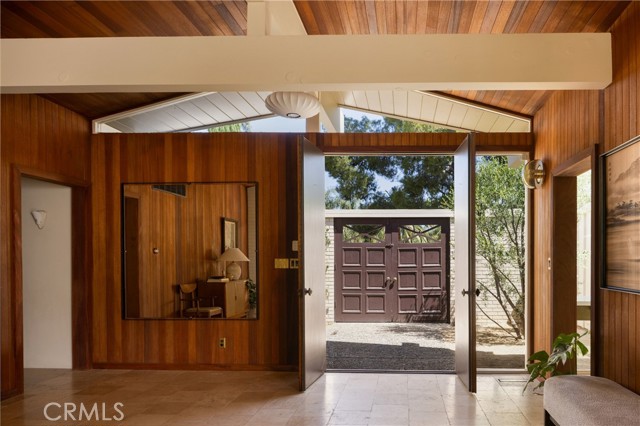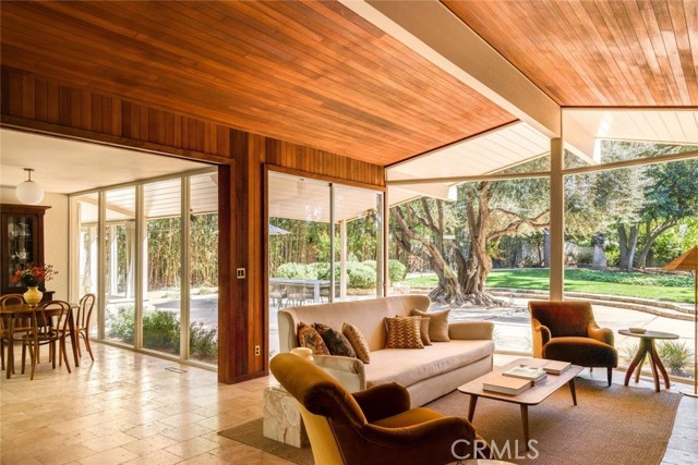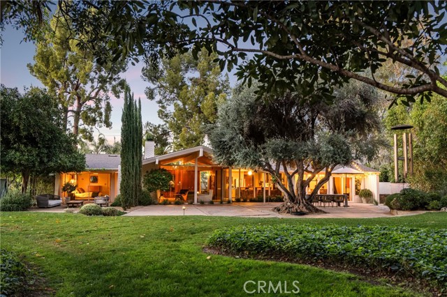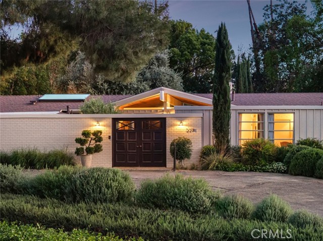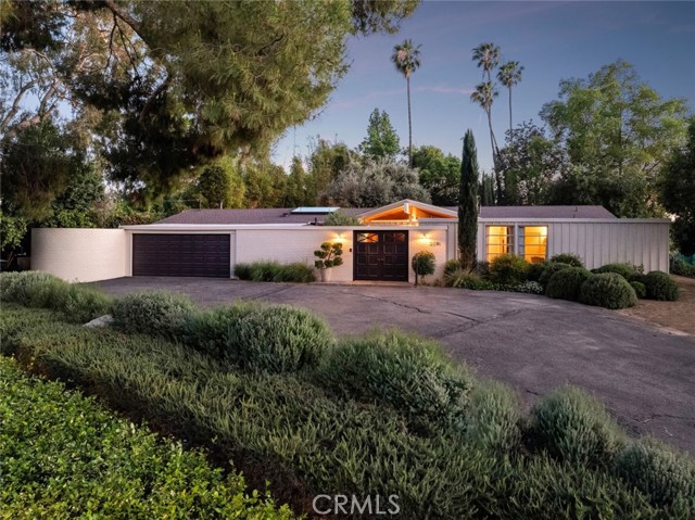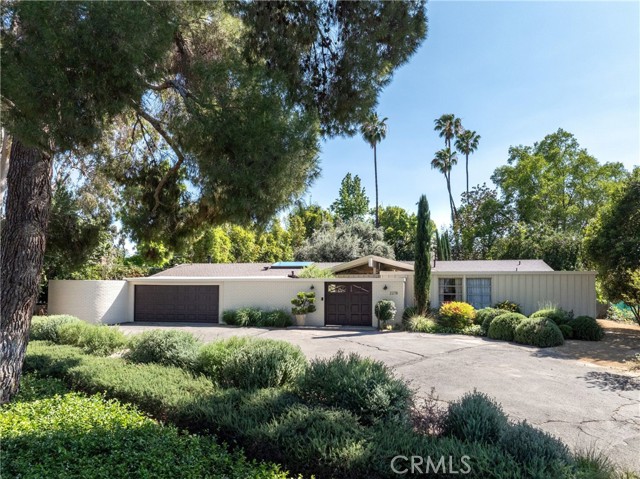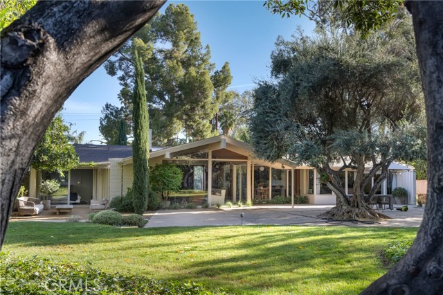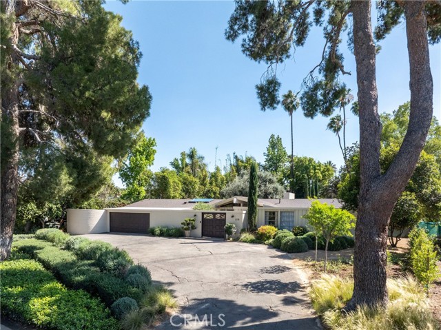 VICTORIA WOODS-Offered as a rare opportunity to own a true piece of Southern California architectural history, this exceptional mid-century modern residence is attributed to noted architect Philmer J. Ellerbroek, whose work was featured in Architectural Digest and helped define the seamless indoor-outdoor lifestyle synonymous with California living. Privately perched on a gentle hill along prestigious Arroyo Drive in the coveted Victoria Woods neighborhood, this residence immediately captivates with a circular drive way with peekaboo views toward the golf course and beyond. A serene gated courtyard sets the tone, guiding you through extra tall double entry doors that upon entering reveal this homes most breathtaking feature.Inside, soaring vaulted ceilings, walls of paneled mahogany and A-framed glass offer picturesque views of an entire landscape that unfolds like a living work of art. It is all anchored by a magnificent original olive tree set within a large concrete patio. Beyond, layers of mature trees, lush lawn, and meandering walkways wind gracefully through ivy and greenery, creating a serene, park-like setting that feels both curated and completely organic.This seamless visual connection between indoors and outdoors embodies the essence of mid-century design where architecture and landscape exist harmoniously.The expansive living room flows effortlessly as the heart of the home, filled with natural light and designed for both quiet moments and entertaining. To the left, the kitchen and adjoining breakfast nook with access to a flexible adjoining room—currently used as a bedroom but ideal as a study or formal dining space. This wing also connects to the enclosed garage, originally designed as a covered carport.The opposite wing is dedicated to privacy, featuring the spacious primary suite along with secondary bedrooms and a well-appointed hall bath reflecting classic mid-century design principles of separation.Originally conceived as a contemporary-modern showpiece, the home has been renovated to retains its architectural integrity while offering flexibility for modern living. Extensive original plans and architectural documents are preserved and included.Situated on approximately half an acre and located just moments from the Victoria Club, schools, shopping and easy freeway, truly exceptional home offered in one of Riverside’s most established and desirable neighborhood where timeless design, privacy, and location converge.