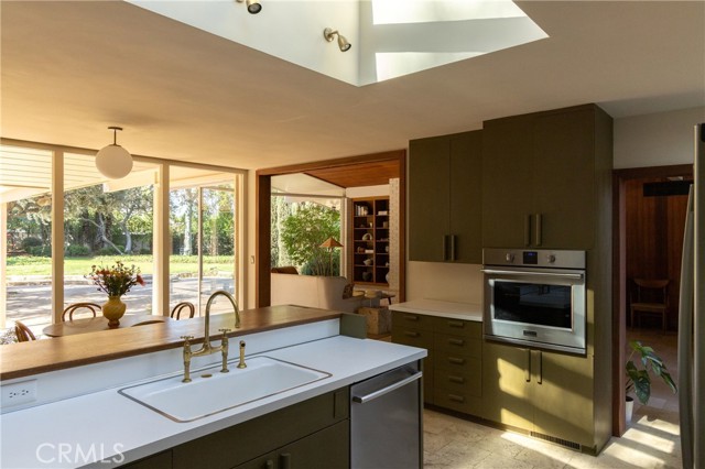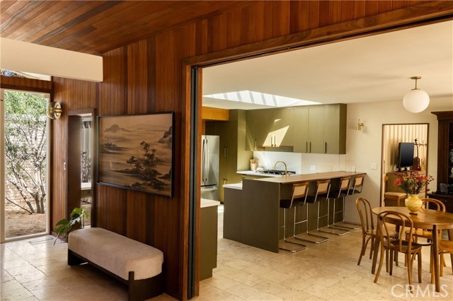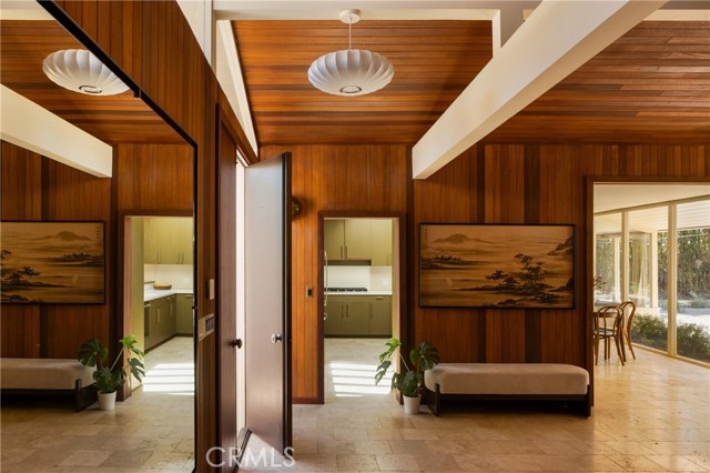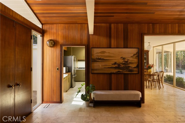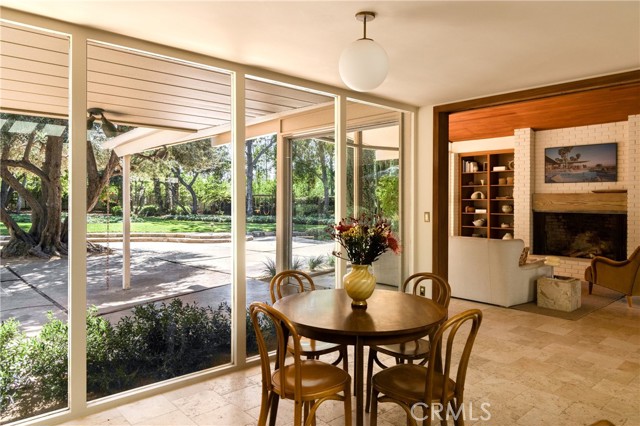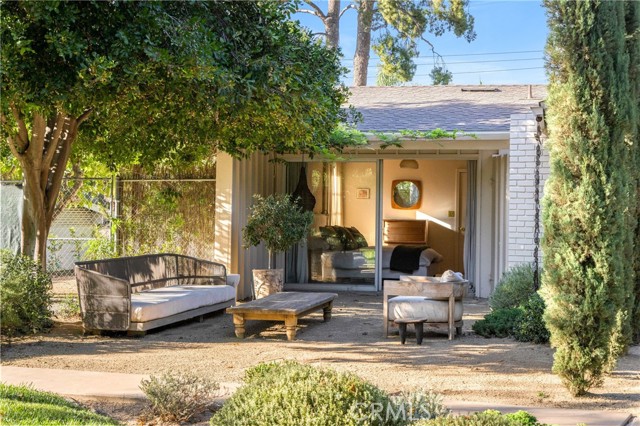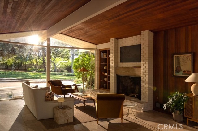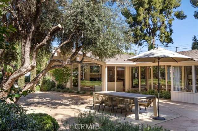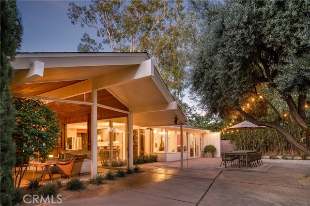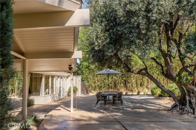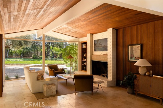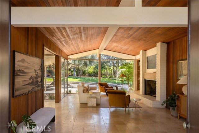 VICTORIA WOODS-Offered as a rare opportunity to own a true piece of Southern California architectural history, this exceptional mid-century modern residence is attributed to noted architect Philmer J. Ellerbroek, whose work was featured in Architectural Digest and helped define the seamless indoor-outdoor lifestyle synonymous with California living. Privately perched on a gentle hill along prestigious Arroyo Drive in the coveted Victoria Woods neighborhood, this residence immediately captivates with a circular drive way with peekaboo views toward the golf course and beyond. A serene gated courtyard sets the tone, guiding you through extra tall double entry doors that upon entering reveal this homes most breathtaking feature.Inside, soaring vaulted ceilings, walls of paneled mahogany and A-framed glass offer picturesque views of an entire landscape that unfolds like a living work of art. It is all anchored by a magnificent original olive tree set within a large concrete patio. Beyond, layers of mature trees, lush lawn, and meandering walkways wind gracefully through ivy and greenery, creating a serene, park-like setting that feels both curated and completely organic.This seamless visual connection between indoors and outdoors embodies the essence of mid-century design where architecture and landscape exist harmoniously.The expansive living room flows effortlessly as the heart of the home, filled with natural light and designed for both quiet moments and entertaining. To the left, the kitchen and adjoining breakfast nook with access to a flexible adjoining room—currently used as a bedroom but ideal as a study or formal dining space. This wing also connects to the enclosed garage, originally designed as a covered carport.The opposite wing is dedicated to privacy, featuring the spacious primary suite along with secondary bedrooms and a well-appointed hall bath reflecting classic mid-century design principles of separation.Originally conceived as a contemporary-modern showpiece, the home has been renovated to retains its architectural integrity while offering flexibility for modern living. Extensive original plans and architectural documents are preserved and included.Situated on approximately half an acre and located just moments from the Victoria Club, schools, shopping and easy freeway, truly exceptional home offered in one of Riverside’s most established and desirable neighborhood where timeless design, privacy, and location converge.