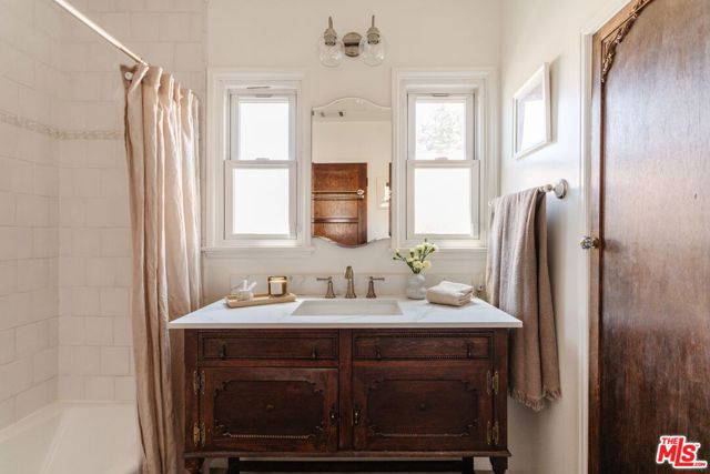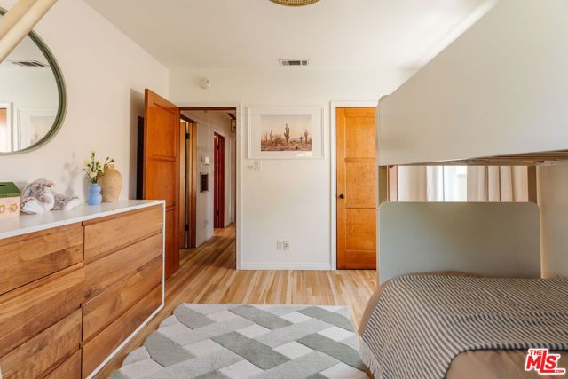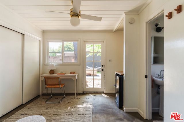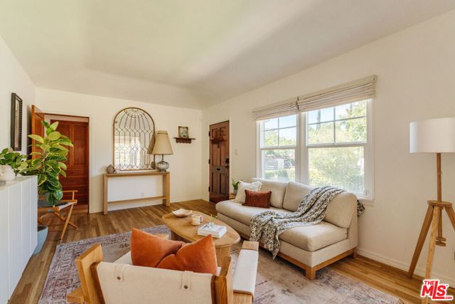 Tucked away on a peaceful street in one of Valley Glen's most desirable pockets, this move-in ready 1939 cottage blends classic charm with modern updates. The main house features 2 bedrooms and 1 full bathroom, plus a flexible office/bedroom with French doors that open to a generously sized backyard. Sunlit living and dining rooms offer a peek of the mountains, while the updated kitchen feels timeless. 1930s details - coved ceilings and original, newly refinished hardwood floors pair beautifully with modern upgrades including EV charging, brand new refrigerator & microwave, central heat/air, double-paned windows, and a remodeled bathroom. The standout feature is a garage conversion with a bathroom and kitchenette - perfect as a guest suite, home gym, recording, or creative studio. The fully fenced backyard is a private retreat with endless possibilities to make it your own. It's adorned with fruit trees, patios, a dining area, fire pit, and plenty of space for outdoor living, additional structures, and plenty of room for a pool. Off-street parking is provided by a generously-sized driveway equipped with EV charging. Don't miss this chance to own a move-in ready cottage that mixes old-world charm with modern comfort - ideal for indoor/outdoor living or a creative setup.