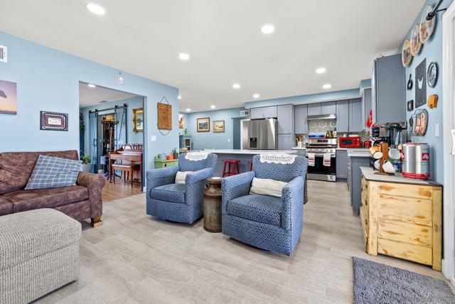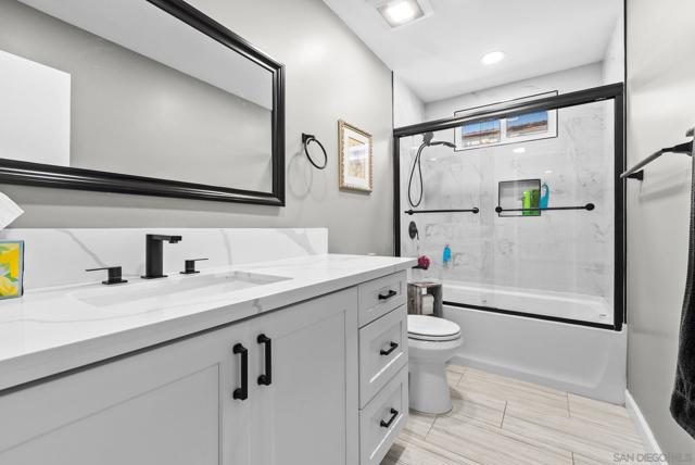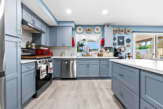Nestled in a quiet, family-friendly pocket of San Marcos, this thoughtfully updated single-story home offers a blend of space, comfort, and everyday functionality. Set on a spacious and fully usable 0.25 acre lot, the property provides privacy and outdoor versatility in a well-established San Marcos neighborhood. The home features an open layout connecting the kitchen, dining, and living areas creating an inviting space for both daily living and entertaining. The remodeled kitchen is designed with both style and practicality in mind, complete with quartz countertops, modern cabinetry, stainless steel appliances, and a large center island. Bathrooms have been tastefully updated with clean, modern finishes, complementing the home’s refreshed interior. LVP flooring, recessed lighting, and neutral design elements carry throughout, creating a cohesive and move-in ready environment. Recent upgrades include updated electrical, plumbing improvements, and AC. The backyard offers a private outdoor retreat with a resurfaced pool and ample space for entertaining, relaxing, or future use. Located near great schools, shopping, dining, and with convenient access to Highway 78 and I-15, this home offers a balanced North County lifestyle.