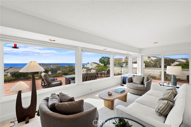 Views, Views and more Views! Perched at the end of a quiet cul-de-sac in one of Dana Point’s most sought-after gated communities NIGUEL SHORES. This coastal paradise offers the ultimate in privacy, coastal luxury, and SINGLE-LEVEL living. With only one neighboring home, this rare residence enjoys unmatched tranquility and expansive ocean views from the main living areas, creating a serene backdrop for daily living and peaceful relaxation. The spacious living room is bathed in natural light and frames dramatic ocean vistas, flowing seamlessly to the outdoor patio—ideal for relaxing against a coastal backdrop. While the dining room sits just off the main living space, it remains intimate and connected to the heart of the home. The kitchen is well-appointed and functional with easy access from the garage. Laundry room sits between the kitchen and direct access garage. The primary suite is a true retreat with a cozy fireplace, its own ocean vistas, providing a peaceful haven to unwind. Built in cabinets and ample closet space ties together the use of the space perfectly. The third bedroom (per the tax records) functions as an office today, an attached two-car garage, a thoughtfully landscaped yard, and a setting that embraces the relaxed elegance of coastal Orange County. NIGUEL SHORES offers a private beach bluff overlooking Strands Beach, private parking and private direct access to the beach. Additional community amenities include a Jr. Olympic size pool heated year-round, spa, saunas, pickleball, tennis, bocce ball, basket ball, playground and greenbelts that wind throughout the community. Located just minutes from world-class beaches, Dana Point Harbor, the Lantern District, and renowned resorts, this is a rare opportunity to enjoy a private slice of the California coast.