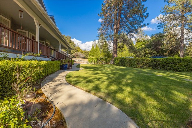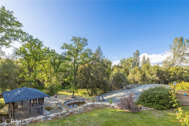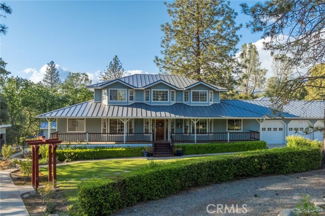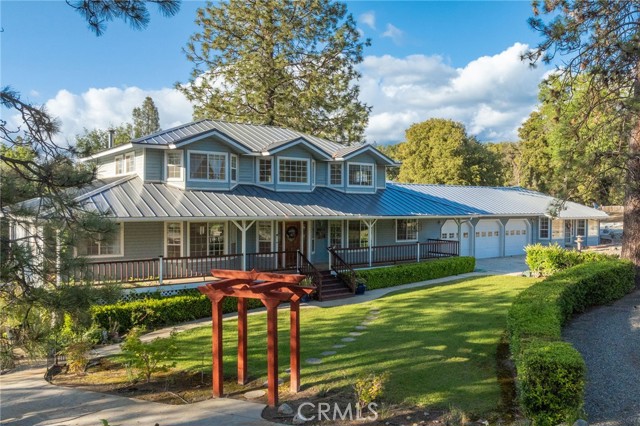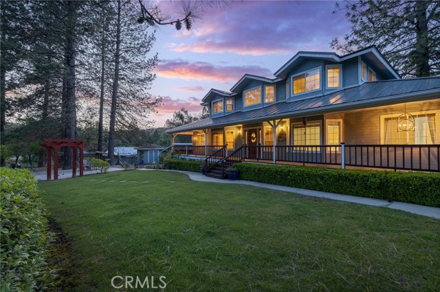 Discover the beauty of refined mountain living set on nearly 4 acres of serene, usable land just minutes from Bass Lake and Yosemite National Park, this exceptional property offers a rare combination of lifestyle, versatility, and income potential in the heart of the Sierra foothills. Designed with both functionality and style in mind, the heart of the home is a stunning chef’s kitchen. Thoughtfully appointed with a large center island beneath a skylight, the space is filled with natural light and warmth. Stone countertops, classic shaker cabinetry, are complemented by double ovens, a gas cooktop, and a tray ceiling. A breakfast bar and casual dining area create the perfect setting for everyday living or effortless entertaining. The formal dinning room offers the perfect space to host. The inviting living room offers a warm and welcoming atmosphere with rich natural textures and an open, airy feel—ideal for both relaxing and hosting guests. This versatile floor plan features a primary suite on each level, offering flexibility for multi-generational living or premium guest accommodations. The main primary retreat upstairs showcases rustic elegance with a wood-accent wall and a spa-inspired ensuite bathroom complete with a dual vanity, walk-in tiled shower, and a luxurious soaking tub. Outdoors, the property truly shines. With nearly 4 acres of usable, horse-friendly land, the possibilities are endless. A mother-in-law home creates an ideal setup for extended family, long-term rental income, or a private guest residence. Additional features include a greenhouse, gazebo, workshop, oversized 3-car attached garage, and striking natural rock outcroppings that enhance the property’s unique character. For investors and savvy buyers, this property presents exceptional income-producing potential. Its proximity to Bass Lake and Yosemite makes it highly desirable for vacation rental demand, while the flexible layout and separate living quarters open the door for multi-unit income streams (buyer to verify local short-term rental regulations). Whether you’re seeking a full-time residence with supplemental income, a vacation home that works for you, or a long-term investment in a high-demand destination, this property delivers. Surrounded by peaceful natural beauty yet conveniently located near year-round recreation, this is a rare opportunity to own a dynamic mountain property with both lifestyle appeal and strong investment upside.