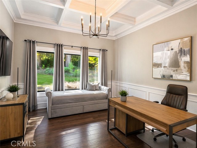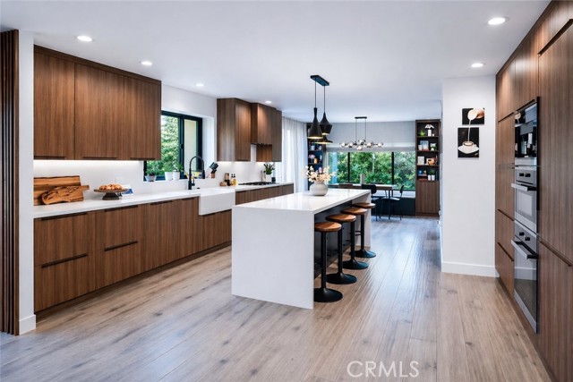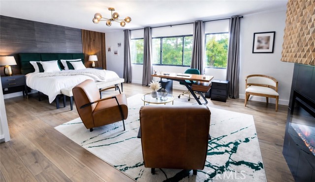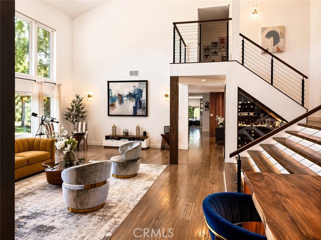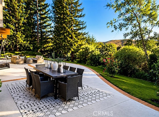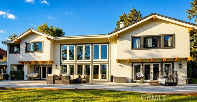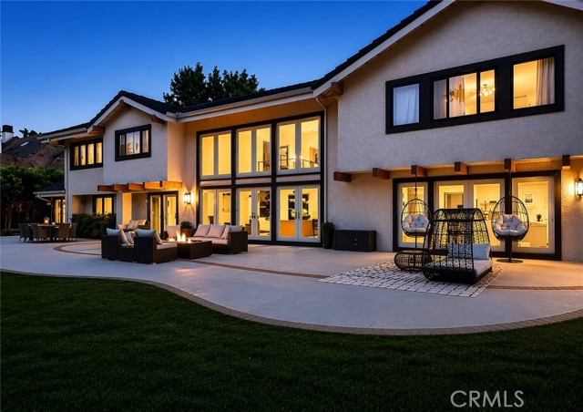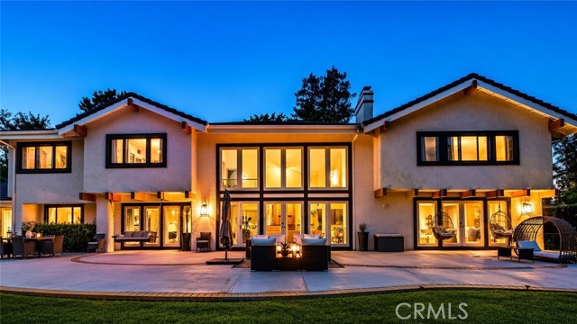 On the Golf Course! See video tour link below. This striking modern contemporary home is showcasing exceptional design and craftsmanship. Recent extensive renovations and additions are thoughtfully curated to complement its timeless elegance, elevated, yet providing all modern comforts of a home. This exceptional home comes fully furnished. Perfectly situated on the exclusive North Ranch Golf Course, it offers panoramic views of both the lush fairways and the surrounding mountains. Special details and bespoke design make this home unique not only for the breathtaking views as you walk in through the front door but for its character that can only be appreciated in person. Every detail reflects modern luxury—from the open-concept living spaces to the curated finishes throughout.The chef’s kitchen features top-of-the-line appliances, 9 foot waterfall island, double oven, built-in espresso/coffee station, and a walk-in pantry. The home includes two primary suites, each with custom walk-in closets and spa-inspired bathrooms featuring jetted tubs and rain showers that create a true retreat experience. The open living room is an entertainer’s dream, showcasing vaulted ceilings, floor-to-ceiling windows, a bar, and a temperature-controlled wine cellar. A separate family room with a large theater screen, full sound setup, and fireplace provides the perfect space to relax and unwind. The custom-built media room/home theater delivers an immersive entertainment experience unlike any other. Exterior upgrades include a new roof, all-new fascia, gutters and protectors, two new A/C units with new ducting installed in 2024, privacy hedging, a private gate, and upgraded garage doors. The finished three-car garage includes an electric vehicle charging unit. The beautiful and peaceful backyard is framed by majestic redwood trees overlooking the impeccably manicured golf course. Enjoy the fully furnished outdoor patio with a dining area, firepit lounge, and outdoor kitchen complete with BBQ, cooktop, counter space, and refrigerator—perfect for evening gatherings under the stars. Outdoor putting green overlooking sky scraping redwood trees that provide privacy from the golf course without abstracting the view of the beautiful mountains. This gated property features extensive security monitoring for peace of mind. The photos capture the home’s elegance, but seeing it in person truly transports even the most discerning buyer to another level of luxury living.