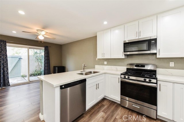 Highly desirable and fully upgraded 2 bedroom 2.5 bath two stories end-unit in the beautiful landscaping Columbia Square, within walking distance to UCI and University Shopping Center. Open floor plan with upgraded kitchen, laminate wood flooring, recess lights, and dual pane windows throughout. Two large bedrooms upstairs, each has its own private full bathroom with Italian-tile shower and Carrara-white quartz vanity. Large living room with fireplace & adjacent dining area door out to private patio. Enjoy the comfort and convenience of an urban lifestyle with nearby entertainment, restaurants, theater, gym, shopping, and more. Close to beach, freeways, and John Wayne Airport. HOA recreational amenities include: pools, play grounds, parks, tennis, and sand volleyball courts.