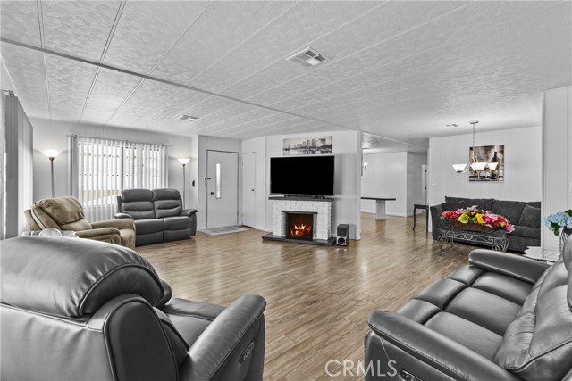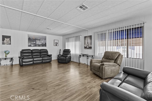 Welcome to this beautifully maintained mobile home in an award-winning 55+ community designed for active seniors who want lifestyle, convenience, and comfort all in one. Step inside to find a move-in ready 2-bedroom, 2-bath home with an enclosed California room, offering extra space to relax, entertain, or unwind. The generous living room flows seamlessly with updated flooring throughout, creating a clean and inviting feel the moment you walk in. The kitchen is both functional and charming, featuring plenty of storage and a built-in range. The primary bedroom offers privacy with its own enclosed bathroom, while the secondary bedroom is spacious and conveniently located near the second full bath in the hallway. Enjoy your morning coffee on the front porch, host weekend BBQs in the private backyard space perfect for grilling and gathering, and take advantage of the oversized driveway with plenty of room for a large truck. And the lifestyle? It’s everything. This vibrant community offers activities for every interest—shuffleboard, outdoor swimming, bingo nights, a library, crafts, cards, and indoor exercise options, within walking distance to a dog park also nearby Kaiser Permanent Hospital and Riverwalk area, perfectly located near shopping, dining, and easy access to the 91 freeway, this is truly location, location, location. If you’ve been waiting for something affordable, low-maintenance, and move-in ready, this is it. Don’t miss your opportunity—schedule your private showing today.