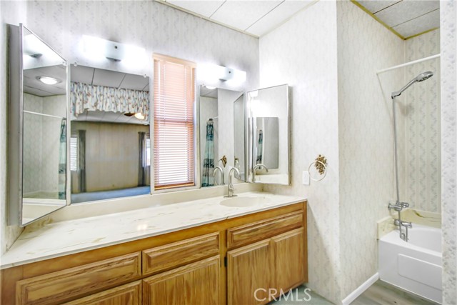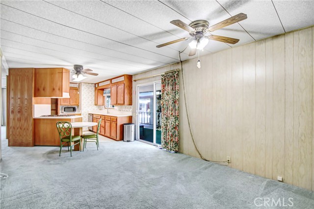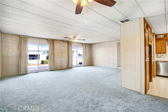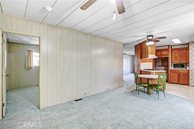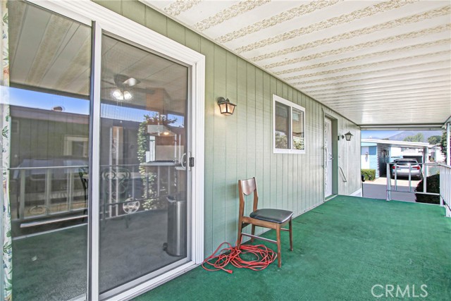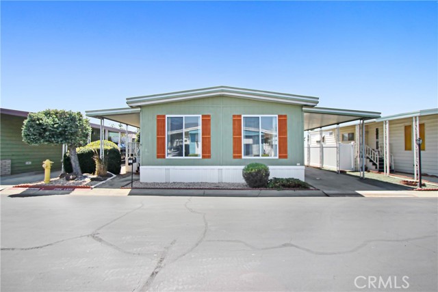 Lovely and well-maintained Treasure of a Home! (MFG: DUALWIDE) located in the highly desirable La Verne Mobile Country Club, an exclusive 55+ community. This spacious home features an open floor plan with a large living room and floor-to-ceiling north-facing windows that fill the space with natural light. The dining area includes a built-in china cabinet, and the spacious kitchen offers oak cabinetry, abundant storage, and a charming kitchenette with a counter table and chairs. A comfortable den/family room sits just off the kitchen and opens onto the large covered porch via a sliding door, perfect for relaxing and enjoying views of the San Gabriel Mountains. Steps lead down to the backyard—ideal for outdoor seating, BBQs, gardening, or pets (if allowed by park rules). The primary bedroom suite is generously sized and includes a spacious bathroom with a separate vanity area and a newly updated tub and shower. Additional features include: Light-colored paneling throughout Ceiling fans Dual-paned windows (installed 2001) A/C condenser replaced in 2006; new A/C unit installed 2016 Upgrades & Improvements over the years: New porch deck & stairs (2017) New ceiling fans (2017) New dishwasher (2017) Home tented (2021) New garbage disposal (2026) New faucets (2026) Roof coating & vent replacement (2026) Carpets cleaned (2026) Primary bath flooring replaced (2026) Home pressure-washed (2026) Stairs & security door paint touch-up (2026) New bathtub wall & shower head in primary bath (2026) Electric motor replaced in primary bath vent (2026) New GFCIs throughout (2026) Professional cleaning service (2026) Community Amenities La Verne Mobile Country Club offers two clubhouses, a community pool, a spa, a dog park, and a BBQ area. Conveniently located within walking distance to shopping and restaurants, with easy access to public transportation, major freeways, hospitals, and airports. Come enjoy the comfort, convenience, and lifestyle this wonderful 55+ community has to offer. Space rent: $636.86 (may adjust slightly for new residents). Home is on property tax.