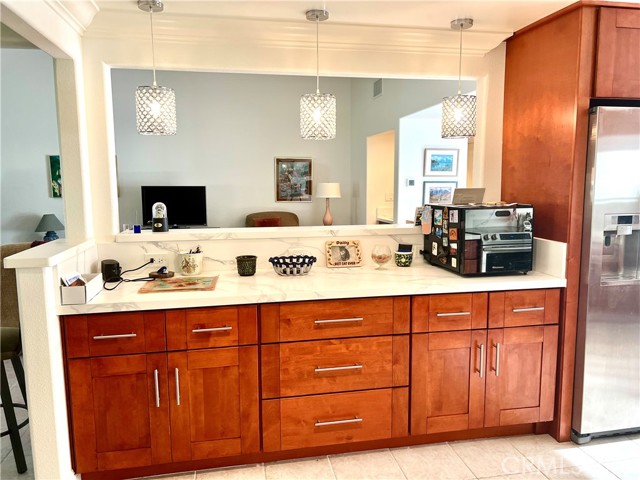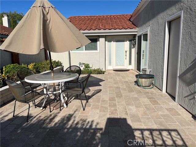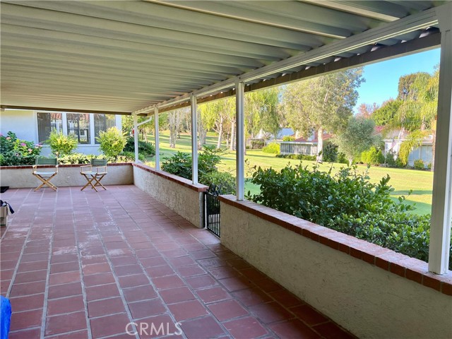 This very popular 2-br, 2-ba Villa with a premier location within the Laguna Woods retirement community. Easy access from gate with a 180 degree park/green belt View. This home has nearly 1600sf of living space in addition to a lovely Private Front courtyard. The kitchen has granite countertops, a cozy breakfast nook, pull-out cabinet drawers and plenty of storage. The living room has a fireplace, vaulted ceiling and a baby grand piano. The master bedroom suite also has a vaulted ceiling. Guest bedroom could serve with flexibility as a hobby room or home office. Both bathrooms have granite countertops, new cabinetry, tile floors throughout the home. The master bathroom has dual sinks. The extra large rear patio has a spectacular park/green gelt view looks like a golf course, easily accessed or seen from the living room or dinning room area. Other great features include central heat/AC, smooth ceilings and a full sized washer & dryer in garage. You can move right in to your new home in Laguna Woods Village – the premier 55+ community. Enjoy the amenities of Laguna Woods Village including: a 18 and par 3 golf course, separate pickle ball courts, 7 clubhouses, 5 swimming pools, tennis complex, fitness center, garden center, RV storage, community transportation, community television and a restaurant overlooking the golf course. There is 24 hour security. There are over 250 clubs and organizations. Just minutes away from Laguna Beach, freeways, medical facilities and shopping. The HOA includes water, sewer, trash, basic cable TV and landscaping. Come and see this beautiful home in a great community!