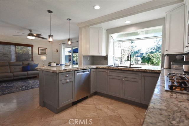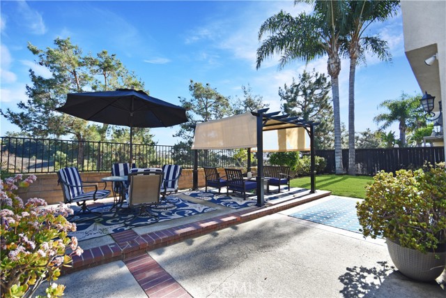 4 bedroom, 3 bath home with a comfortable layout and generous living space. The kitchen features an extended bar and opens into the main living areas, creating a functional flow for everyday living. Custom cabinetry, updated lighting, and clean finish details carry throughout the home. The backyard offers privacy with no homes directly behind and includes a raised sunshade structure along with usable grass space. Located on a single-loaded street in an established neighborhood, just a short distance to Pinecrest Park and the Oso Trail, with convenient access to Trabuco Hills Center and Portola Plaza for shopping, dining, and everyday needs.