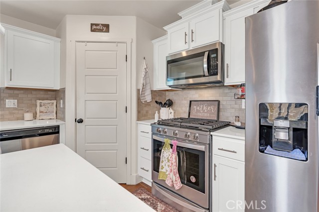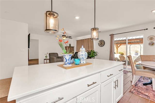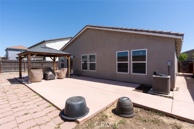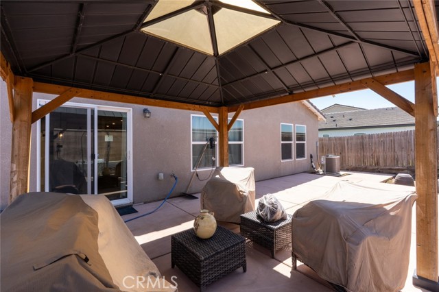 Welcome to this beautifully maintained single-story home built in 2020, located in a desirable gated community. This 4-bedroom, 2-bathroom home offers a modern open-concept layout designed for comfortable living and entertaining. The kitchen features quartz countertops, stainless steel appliances, a gas stove, built-in microwave, pantry, and a convenient bar area—all opening seamlessly to the spacious living room filled with natural light. Refrigerator is included, adding extra convenience for the new owner. Tile flooring enhances both style and durability in the main living areas. The primary suite offers a relaxing retreat with a walk-in closet, dual sinks, and a walk-in shower. Three additional bedrooms provide flexibility for family, guests, or a home office. Washer and dryer are also included, making this home truly move-in ready. Outside, enjoy a low-maintenance backyard with extensive concrete—perfect for entertaining or easy upkeep. The property also offers potential RV or boat parking, adding extra versatility. With a stucco exterior and modern finishes throughout, this home combines style, function, and convenience in a secure community setting.