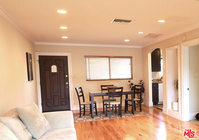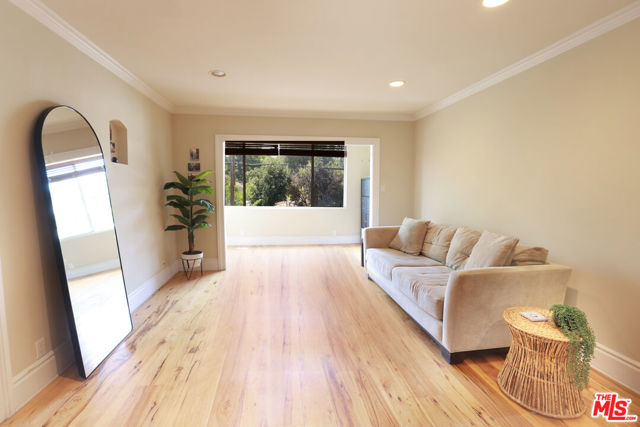 Tucked South of Ventura Boulevard, this upgraded 1-bedroom residence offers a rare combination of space and flexibility, complete with a bonus area ideal for a home office, gym, or creative studio.Natural light fills the living space, with large windows framing leafy views and creating a bright, relaxed atmosphere throughout. The layout feels open yet defined, offering both comfort and functionality for everyday living.Thoughtful upgrades and features include central A/C and Heat, hardwood floors, 2 parking spaces, and earthquake insurance a rare and valuable offering in this market.Set within a well-maintained community, residents enjoy peaceful surroundings and a sparkling pool, creating a quiet retreat just moments from the best of Sherman Oaks' shops, dining, and everyday conveniences.