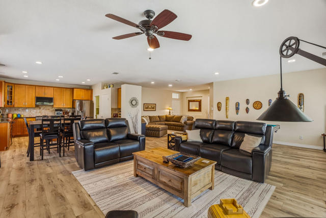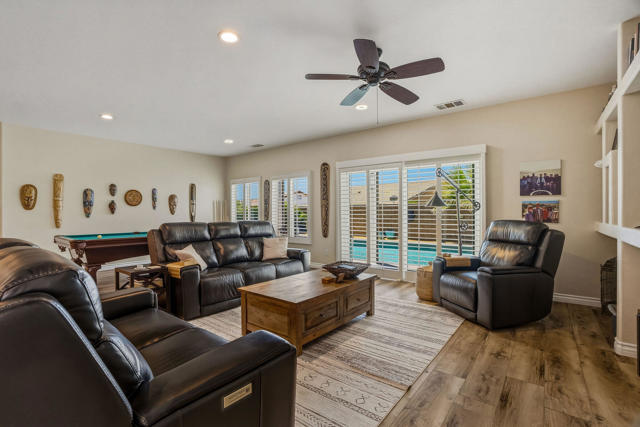 Welcome to Shadow Hills. This beautifully maintained 4-bedroom, 3-bath home offers 2,107 sq ft of open-concept living designed for both comfort and entertaining. The spacious layout seamlessly connects the living, dining, and kitchen areas, creating a bright and inviting atmosphere throughout.The home features several recent upgrades, including engineered hardwood flooring installed less than four years ago, exterior paint completed approximately five years ago, updated patio doors, and a full suite of appliances that are all less than one year old.Step outside to a private backyard retreat complete with a pebble tech pool and spa, perfect for relaxing or hosting year-round.Ideally located near the rapidly growing North Indio area and just minutes from The Lights at Indio Golf Course, this home offers convenient access to shopping, dining, and entertainment while maintaining a comfortable neighborhood feel.