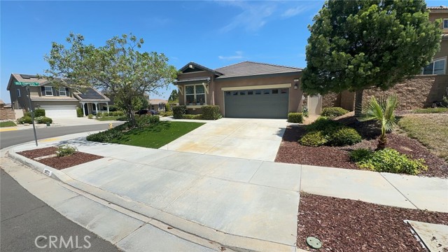 Welcome to the desirable Rancho Bella Community in the heart of Murrieta! This beautifully maintained 3-bedroom, 2-bathroom home offers comfort, style, and an ideal single-story layout designed for everyday living. Step inside to a tile entry that opens to a spacious formal living room filled with natural light. The open-concept floor plan flows seamlessly into the inviting family room, complete with a cozy fireplace and direct access to the backyard. The kitchen is perfect for gathering and entertaining, featuring a large center island with additional seating, granite countertops, black appliances, abundant cabinetry, and generous prep space—all open to the family room for easy interaction. The private primary suite offers a relaxing retreat with an ensuite bathroom showcasing a double-sink vanity, soaking tub, and separate walk-in shower. Two well-appointed secondary bedrooms and a guest bathroom with a tub/shower combination provide comfortable accommodations for family or guests. Additional highlights include a spacious indoor laundry room with built-in cabinets, neutral designer paint tones, recessed lighting, ceiling fans throughout, and an attached two-car garage. Situated on a desirable corner lot, this home boasts beautiful curb appeal and a nicely landscaped, fully fenced vinyl backyard with a concrete patio slab—perfect for outdoor dining, entertaining, or relaxing. Conveniently located near parks, shopping, dining, award-winning schools, and with easy access to the I-15 and I-215 freeways for commuters. This is a wonderful opportunity to enjoy all that Murrieta has to offer!