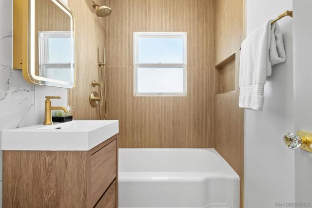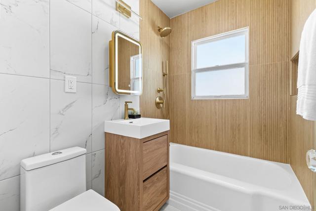 Experience elevated coastal living in the heart of Coronado Village with this newly reintroduced, fully reimagined 1BR/1BA residence. Thoughtfully redesigned to maximize space and natural light, the open-concept layout creates a bright, airy atmosphere with a seamless modern flow throughout. Beautifully refinished original hardwood flooring, fresh interior paint, recessed lighting, and upgraded electrical enhance the home’s clean, contemporary aesthetic. The designer kitchen showcases Calacatta quartz countertops, classic shaker cabinetry, a full tile backsplash, floating shelves, and premium appliances, perfectly blending style and functionality. The bathroom offers a spa-inspired retreat, complete with all-new tile flooring and surround, a sleek updated vanity, LED mirror, and elevated designer fixtures. The primary bedroom captures peek high-rise downtown skyline views, adding a rare and unexpected city perspective to this coastal setting. Thoughtful upgrades continue with enhanced insulation, attic improvements, a new front door with updated hardware, in-unit laundry, and a newly installed mini-split system for efficient year-round comfort. Curated exterior enhancements further elevate the home’s overall appeal. Ideally located just moments from Coronado’s boutiques, dining, and world-renowned beaches, this turnkey residence presents a fresh opportunity to experience refined island living. Experience elevated coastal living in the heart of Coronado Village with this newly reintroduced, fully reimagined 1BR/1BA residence. Thoughtfully redesigned to maximize space and natural light, the open-concept layout creates a bright, airy atmosphere with a seamless modern flow throughout. Beautifully refinished original hardwood flooring, fresh interior paint, recessed lighting, and upgraded electrical enhance the home’s clean, contemporary aesthetic. The designer kitchen showcases Calacatta quartz countertops, classic shaker cabinetry, a full tile backsplash, floating shelves, and premium appliances, perfectly blending style and functionality. The bathroom offers a spa-inspired retreat, complete with all-new tile flooring and surround, a sleek updated vanity, LED mirror, and elevated designer fixtures. The primary bedroom captures peek high-rise downtown skyline views, adding a rare and unexpected city perspective to this coastal setting. Thoughtful upgrades continue with enhanced insulation, attic improvements, a new front door with updated hardware, in-unit laundry, and a newly installed mini-split system for efficient year-round comfort. Curated exterior enhancements further elevate the home’s overall appeal. Ideally located just moments from Coronado’s boutiques, dining, and world-renowned beaches, this turnkey residence presents a fresh opportunity to experience refined island living.