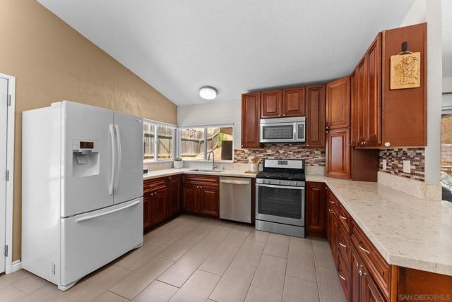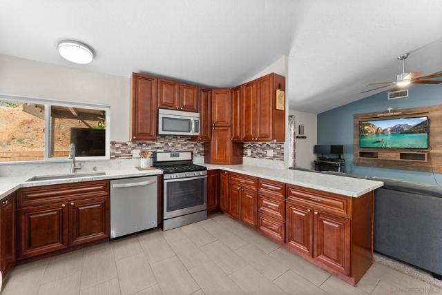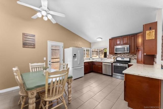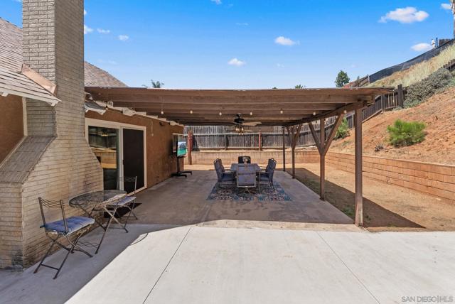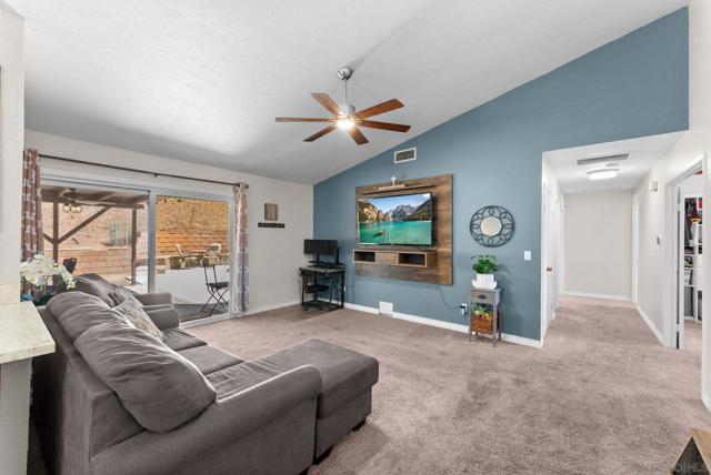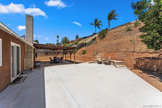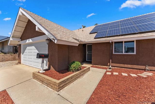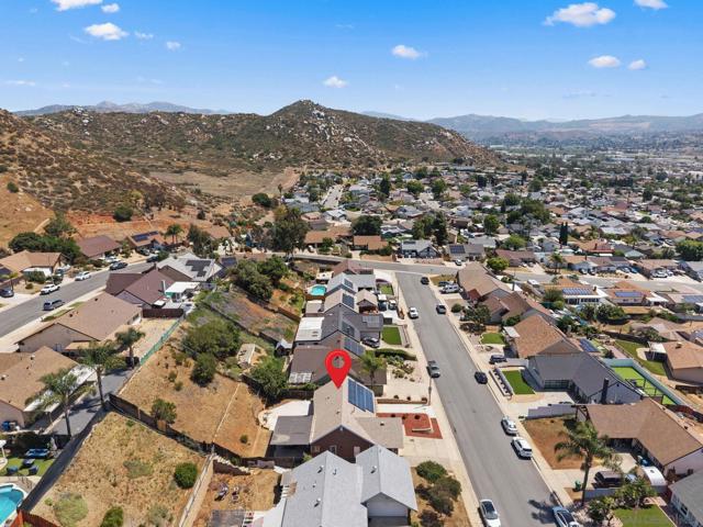 Tucked into one of Santee’s quietest neighborhoods, this Santana Hills gem offers the perfect balance of convenience and serenity—just minutes from top-rated schools, shopping, major highways, and the Santee Sportsplex, yet peacefully removed from the everyday hustle. Enjoy beautiful mountainous views that create a stunning backdrop for some of the best sunrises and sunsets in the area. This beautifully maintained 3-bedroom, 2-bath home is loaded with thoughtful upgrades, giving the next owner true peace of mind. A newer roof was installed prior to the 200-amp electrical panel upgrade, and solar adds efficiency and long-term savings. Dual pane windows and sliders throughout enhance energy efficiency, comfort, and natural light, while vaulted ceilings create an open, airy feel. Inside, you’ll find a full suite of newer appliances, including refrigerator, stove, microwave, washer, dryer, and hot water heater. The home also features an insulated garage door with a newer opener, plus low-maintenance landscaping in both the front and backyard. The upgraded kitchen is both stylish and functional, featuring quartz countertops and under-cabinet lighting—perfect for everyday living and entertaining. Alongside the driveway, a spacious concrete pad framed by a decorative block retaining wall provides ideal RV parking with hookups—or plenty of room for additional vehicles and toys. This is the kind of home that checks all the boxes—comfort, upgrades, views, and location.