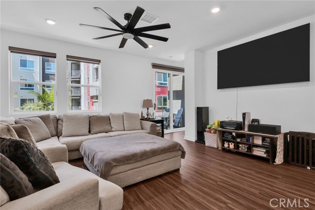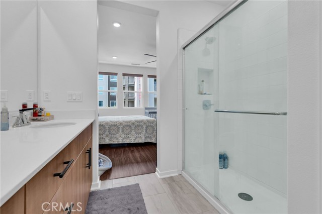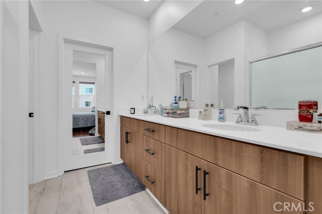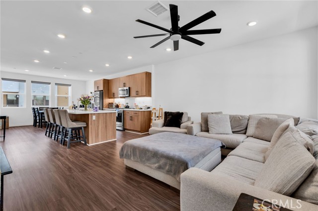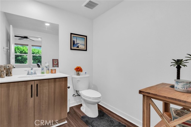 FHA ASSUMABLE LOAN: 3.75%. Welcome to this beautifully maintained 2-bedroom / 3.5+ bathroom home built in 2022 (the FIRST FLOOR has a flex space for possible conversion to a bonus room with its own split system) in the desirable city of Orange. The open-concept living and dining area is filled with natural light and recess lighting and modern finishes. The spacious kitchen includes a farm-style sink, abundant cabinetry, a breakfast bar, quartz countertops, and stainless-steel appliances. The unit has upgraded vinyl water-resistant flooring throughout with its own balcony. Keep your electric bills down with paid-off solar panels. The large primary suite offers a well-sized room with lots of windows and a ceiling fan attached to an updated en-suite bathroom with dual sinks and a walk-in closet with dual side mirrors for ultimate comfort and privacy. The unit boasts full washer and dryer hookups, making it convenient to do laundry, and has plenty of added storage. The second room also has a ceiling fan and an en-suite full bathroom with lots of natural light overlooking the scenic pool area. Additional highlights include an attached 2-car garage with direct access and added storage. Flex space would be great if you wanted to convert it to a private mother-in-law suite, or it could be used as a private office space or baby room. Pets are no problem. Tankless water heater and central air and heat for the entire unit Perfectly situated minutes from The Outlets at Orange, CHOC Hospital, UCI Medical Center, schools, dining, Chapman University, and major freeways (5, 22, 57), this home offers both convenience and tranquility. DON’T MISS OUT ON THIS PROPERTY; CONTACT US TODAY!