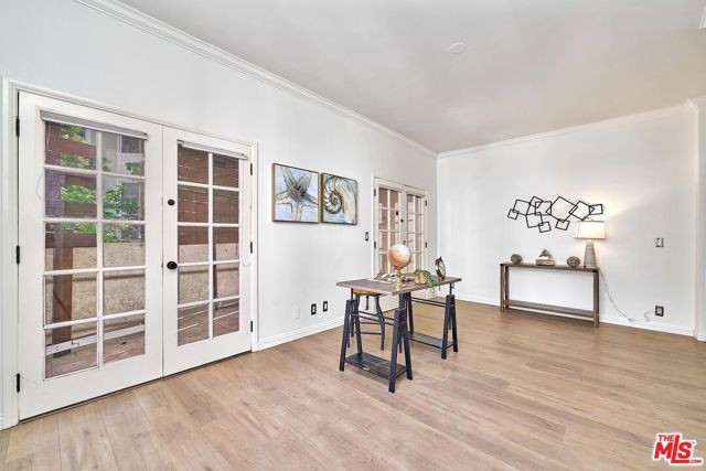 Welcome to your serene Brentwood retreat at 420 S. Barrington Avenue. This inviting condominium offers the perfect blend of comfort, style, and secure city living. The thoughtfully designed floor plan features two spacious bedrooms positioned on opposite sides of the home, offering enhanced privacy and flexibility. A generously sized living room with a classic fireplace creates a warm and inviting centerpiece for everyday living and entertaining. Just beyond the living room, charming French doors open to an oversized private balcony complete with custom wood-slat privacy screens, creating the perfect extension of your indoor living space for relaxing or entertaining outdoors. A brand-new HVAC system adds modern comfort and efficiency year-round, while a separate laundry area adds everyday convenience and functionality. The meticulously maintained community offers side-by-side parking in a gated garage, convenient guest parking, and additional assigned storage on the fourth floor. Set within a boutique building, the residence provides a rare sense of privacy and exclusivity, while also welcoming your furry family members.Located moments from Brentwood's premier dining, shopping, and neighborhood parks, this home delivers an exceptional blend of style, comfort, and walkable convenience in one of Los Angeles' most sought-after communities.