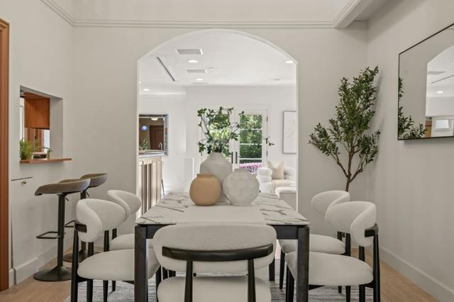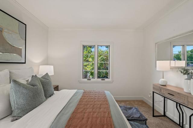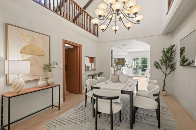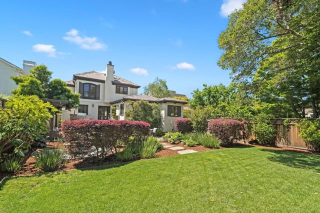 Remodeled and expanded in 2006, this Burlingame stunner offers a flexible, thoughtfully designed floor plan for modern living. Set on an oversized, private lot with mature landscaping, the home blends timeless elegance with everyday comfort. The main level features a formal living room with gas-assist wood fireplace and dining room with soaring two-story ceiling and statement chandelier. The chef's kitchen includes stainless steel appliances, granite countertops, breakfast bar, and eat-in area, opening to a home theater family room with surround sound. A laundry/pantry with additional oven and refrigerator adds convenience. The main level includes two bedrooms with a hall bath, plus a junior primary suite with en-suite bath, walk-in closet, and private rear entrance ideal for guests, extended family, or au pair. Upstairs, the primary suite offers dual walk-in closets, along with a wood-paneled library with custom shelving and sliding ladder, a 5th bedroom, and hall bath. Additional features include new flooring and paint, plus attached one-car garage. The backyard is designed for California living with a built-in BBQ, plumbed gas firepit, and water feature surrounded by a sunny yard and lush landscaping. Walk to top-rated Burlingame schools, Caltrain, and downtown Burlingame.