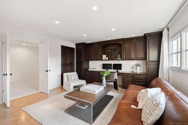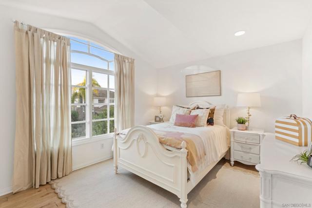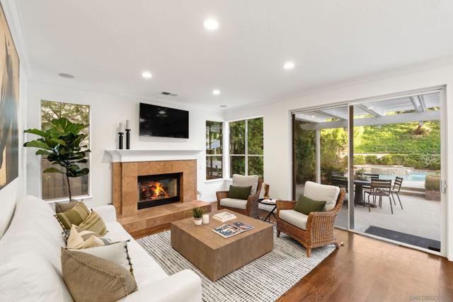 Sitting on a private cul-de-sac in the highly desirable Santa Fe Summit neighborhood of Carmel Valley, this home is walking distance to Torrey Pines High School and nearby parks, hiking trails and highly-rated schools. As you step inside, you're greeted with soaring ceilings, beautiful millwork, and a light and bright floor plan with a full bedroom and bathroom on the first floor, fully remodeled kitchen with ample cabinet and counter space, and upstairs master suite with a two-way fireplace, large walk-in closet and separate tub/shower. The backyard is great for entertaining highlighting a sparkling pool/spa, outdoor kitchen with sit-in bar, cabana, multiple patios and outdoor fire pit. The home also features new HVAC, a loft/media room, attached 3-car garage, EV charger, whole house water filtration and charming curb appeal. This is not one to miss!