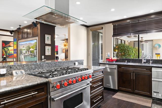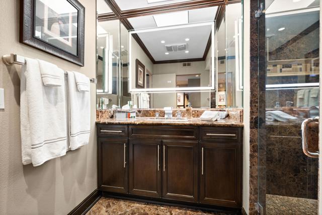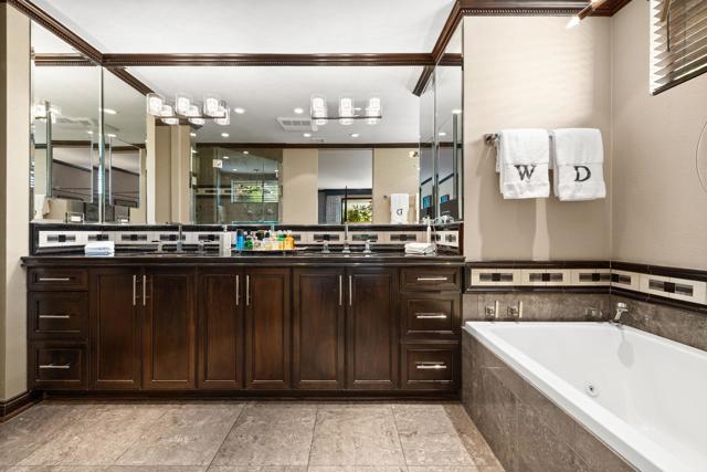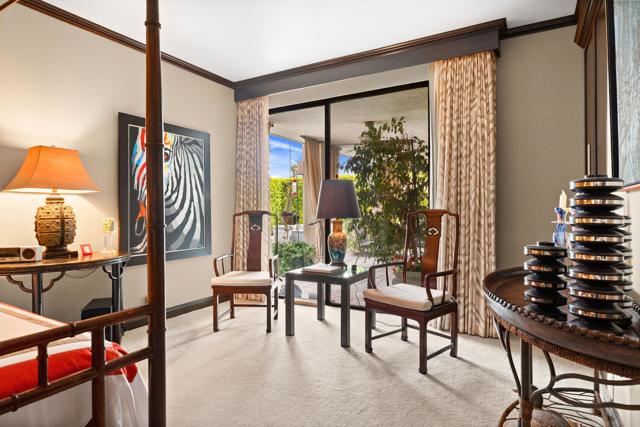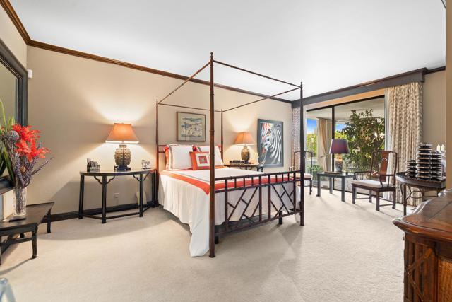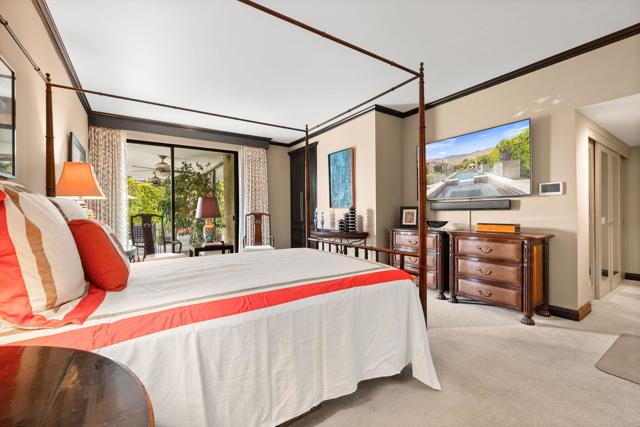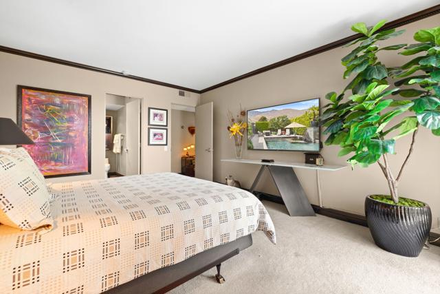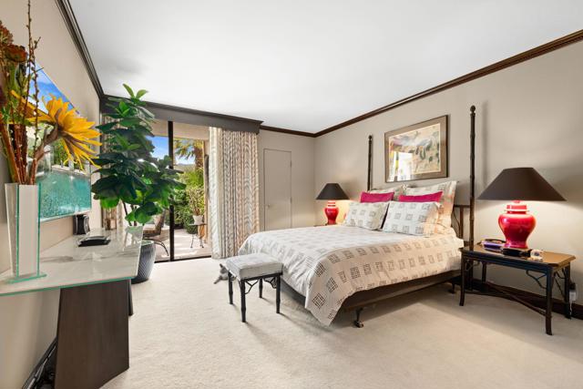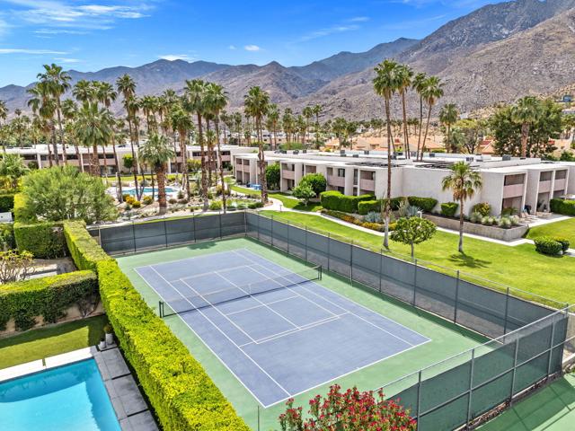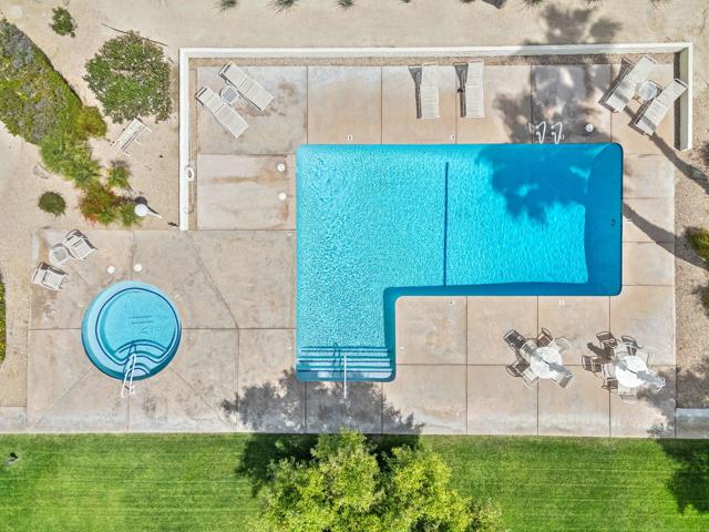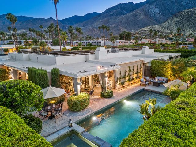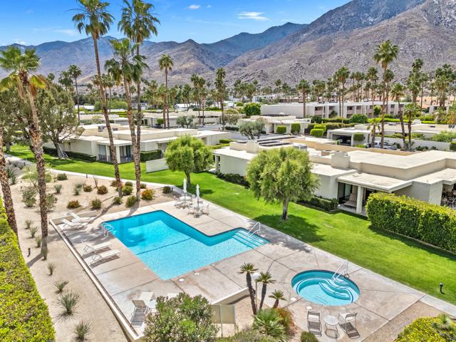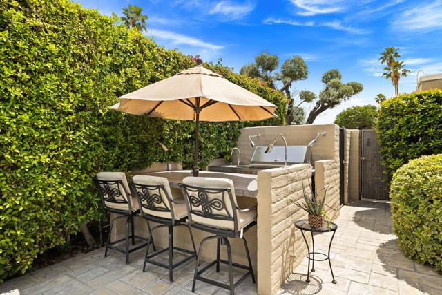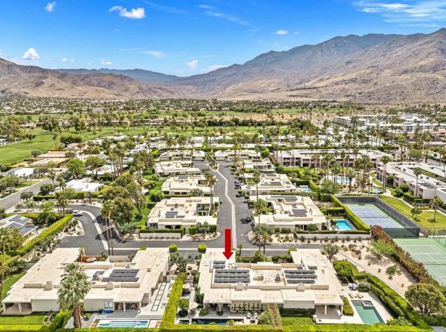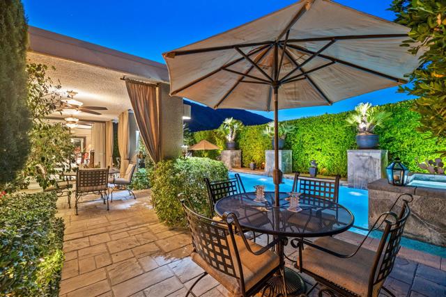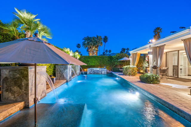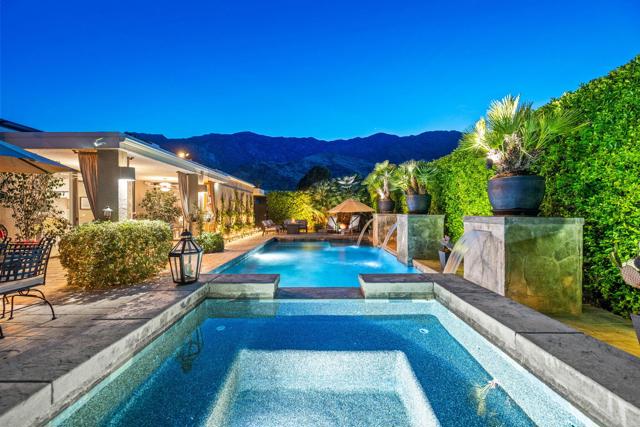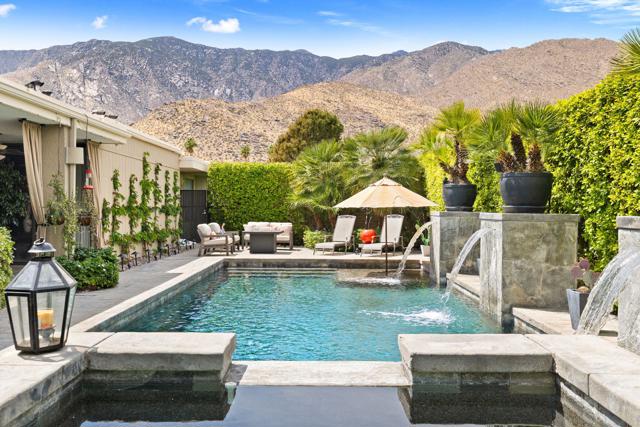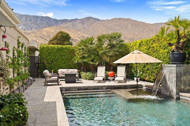 CHIC and sophisticated condo with all modern comforts and amenities. LARGE 2,861 square foot home with a PRIVATE POOL & SPA, 2 bedrooms PLUS a den/office/bedroom option. HIGH ceilings, LARGE closets, beautiful flooring, lighting and plumbing fixtures. 2 car garage, meticulously finished. Impressive chef's kitchen with high-end stainless appliances. Multiple private patios, fountains, fire and water features, dedicated BBQ area and SOLAR system. A private, quiet, landscaped paradise with excellent mountain views. Owners will find sanctuary and guests will be spoiled! HOA offers community pool and tennis, HOA covers water, trash, EQ insurance, exterior walls, roof and yard maintenance.