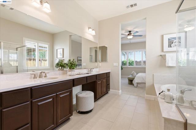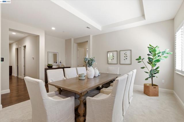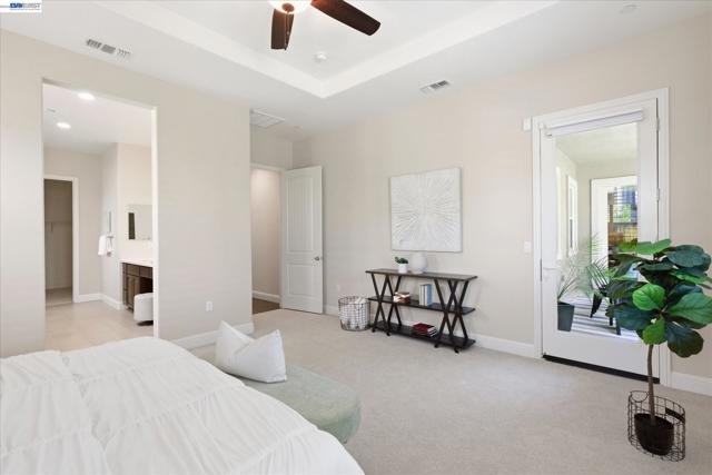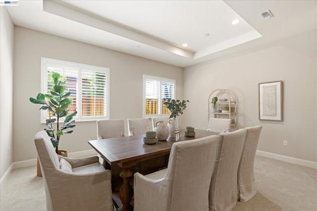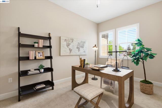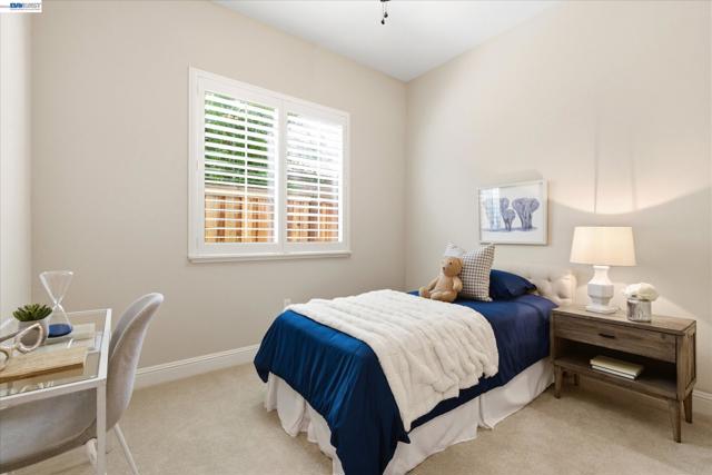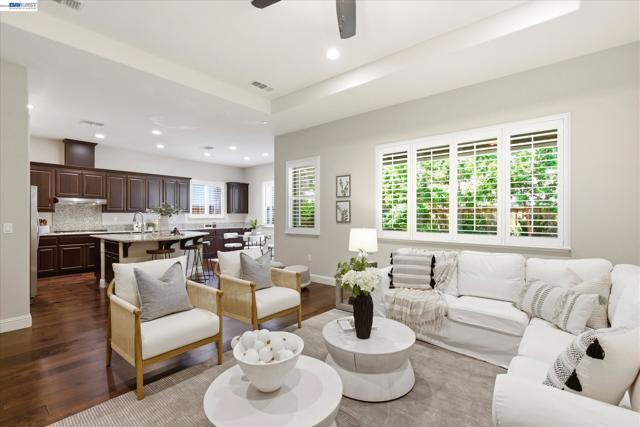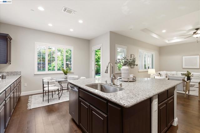 Welcome to 101 Gridley Court, ideally located in the sought-after Villagio neighborhood, just a short stroll to the neighborhood park, elementary school, aquatic complex, and senior activity center. Built by Discovery Homes, this beautifully maintained single-story Belice model offers 4 bedrooms and 3 bathrooms with a thoughtfully designed layout. The home showcases beech cabinetry with a rich sienna stain throughout, complemented by recessed lighting, ceiling fans, and an upgraded Whirlpool appliance package featuring a convection oven, built-in microwave, and gas cooktop. Elegant upgrades include custom soft white shutters, an upgraded shower enclosure, engineered wood flooring, and Smokey Pearl slab granite. Fresh interior paint and new carpet complete the home, giving it a crisp, move-in ready feel.
