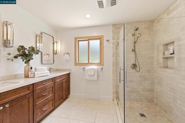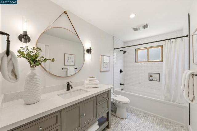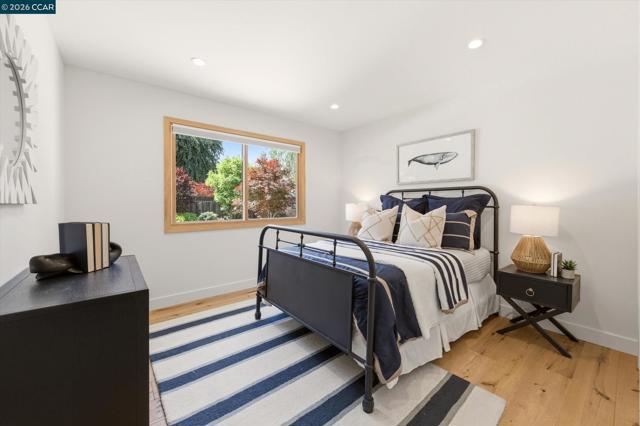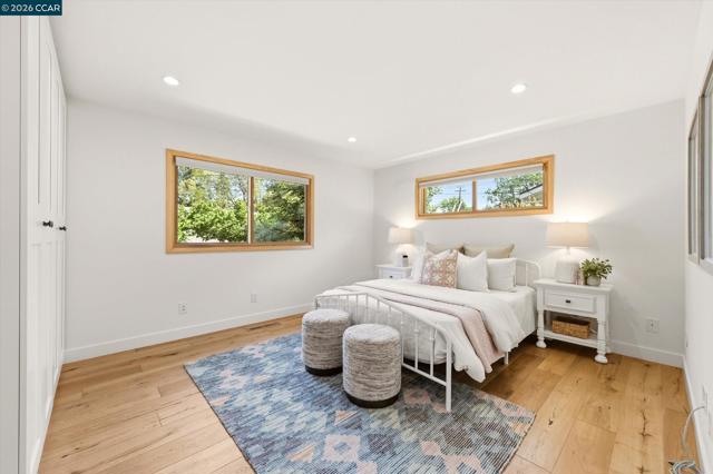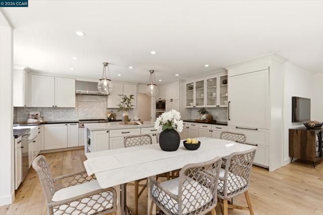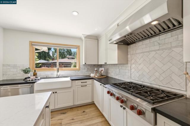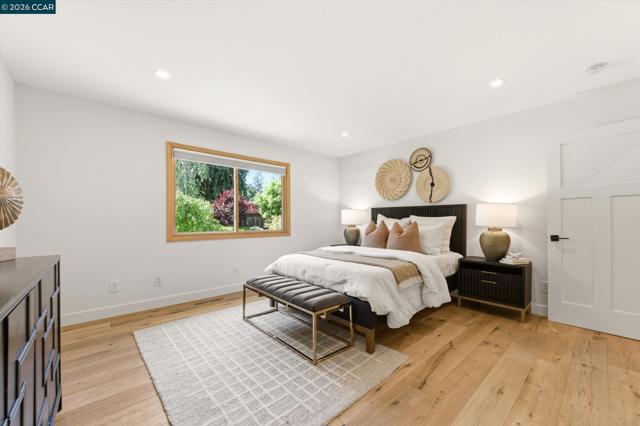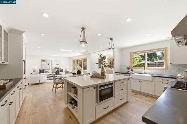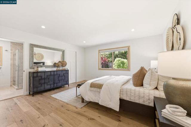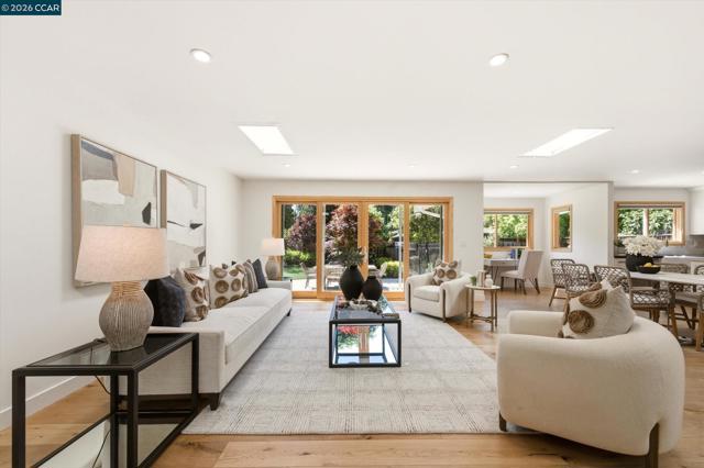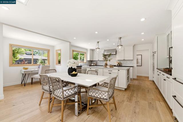 Turnkey single-story living on a quiet street in Walnut Creek. Set on a flat quarter-acre lot just minutes from downtown Walnut Creek and Highway 680, with BART and Heather Farms Park both walkable from the front door, this fully reimagined 3-bedroom, 2.5-bathroom residence makes commuting easy while delivering nearly 2,000 square feet of light-filled, open-concept living space designed for both everyday comfort and entertaining. A $500K+ permitted remodel ~8 years ago transformed every surface with intention: a chef's kitchen anchored by a Wolf cooktop, Sub-Zero refrigerator, and Wolf double wall ovens surrounded by custom Decora cabinetry and solid-surface counters; Duchateau engineered hardwood floors flowing through every room; windows framing garden views; and a spacious primary suite with a custom-designed bath that feels like a private retreat. Step outside and the magic continues. A professionally landscaped backyard opens to level lawn, mature gardens, and a sparkling pool - installed within the last five years - featuring an automatic pool cover and secure child-safety fencing. This is the backyard you've been searching for: flat, private, and made for everything from Saturday morning coffee to summer entertaining. Future-ready features lower your costs and footprint: 23 owned solar panels and an EV charging station keep annual PG&E electric charges to approximately $1,500, inclusive of EV charging - a savings that compounds every year. Additional highlights include an attached two-car garage, contemporary and recessed lighting throughout, and a peaceful setting on a non-through street.