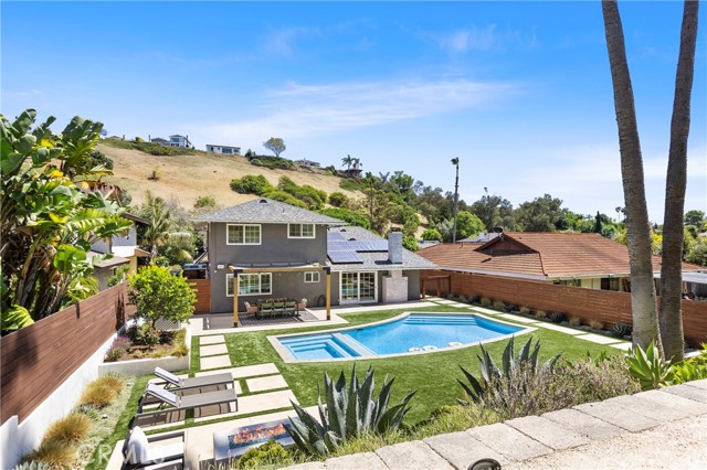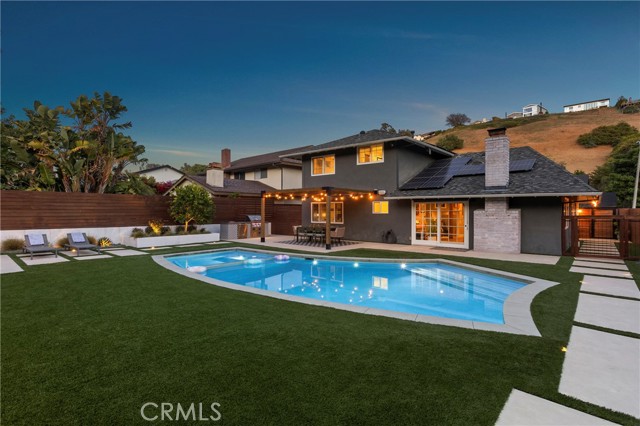 Extensively upgraded and thoughtfully remodeled in the sought after Pacesetter community with no HOA, this exceptional home offers the perfect blend of modern luxury, efficiency, and indoor-outdoor living. A major renovation in 2016 transformed the entire home, featuring a redesigned floor plan with a spacious upstairs primary suite complete with a large, walk-in closet, all-new windows and doors, a beautifully updated kitchen, new roof, dual-zone AC and furnace, Navien water heater, and a custom gas fireplace. The kitchen was also redesigned, removing a wall plus the main floor bathroom also was moved to the hallway while keeping a main floor bedroom. Additional upgrades include Lutron lighting, new shutters throughout, and a fully finished garage with built-in storage and professionally sealed flooring. Designed for entertaining, the backyard was completely reimagined in 2021 with a resort-style pool and spa featuring a saltwater filtration system, heater, and added jacuzzi. Enjoy outdoor living at its finest with a custom BBQ, custom mural wall, firepit, new fencing, irrigation, and enhanced drainage. The home also features a whole-house water softening and filtration system, plus purified drinking water in the kitchen. Energy efficiency is maximized with solar panels and a battery backup system added in 2020. Recent improvements continue with a fully renovated and expanded driveway, redesigned front yard and entrance, new perimeter fencing, and a security camera system (2023). A stylish wine nook added in 2024 completes the home’s thoughtful upgrades. This turnkey property offers elevated living with premium improvements inside and out—truly a rare opportunity.