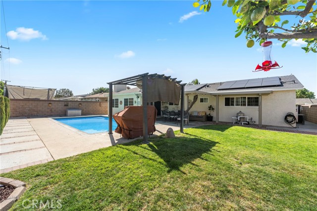 This home comes with a brand new paid off solar system, Tesla Powerwall 3 battery, and new roof all installed in 2025, helping keep your electric bills down while also giving you backup power when the sun goes down or during a blackout. This move-in ready home is a great fit for a growing family that needs more space. The layout is open and easy to live in, with multiple living areas that give you flexibility for both everyday life and hosting. The front living room flows into the dining area, while the separate family room with a fireplace opens right up to the kitchen, making it a great space to gather. The kitchen has been updated with quality cabinets, granite countertops, and stainless steel appliances, with a breakfast bar that connects everything together and keeps it functional for busy days. All of the bedrooms are a good size, with updated flooring and a clean, well-kept feel throughout the home. The primary bedroom offers plenty of space along with mirrored closet doors and a comfortable layout. The backyard is set up for fun and entertaining, with a pool, grass area for kids or pets, and a covered patio that’s perfect for BBQs or hanging out in the shade. There’s a good mix of hardscape and yard space, so it’s easy to enjoy without a lot of maintenance. Out front, you’ve got great curb appeal with a wide driveway, clean landscaping, and a welcoming front porch. The home is in a great location close to parks, schools, and shopping. You’re just minutes from parks, grocery stores, Target, and have easy access to nearby freeways for commuting. If you’re looking for a home that’s ready to go, has energy savings built in, and gives your family room to grow, this one checks all the boxes.