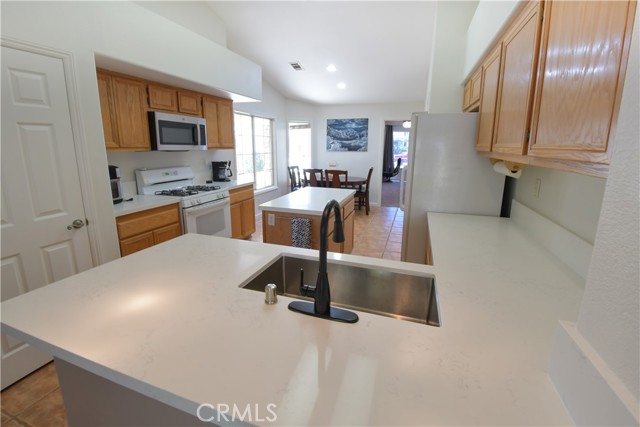 Beautiful single story home! 4 bedrooms and 2 bathrooms. Move-in ready with brand new quartz counter tops, crisp white paint and carpet in bedrooms. Fantastic open layout and vaulted ceilings. Large kitchen with breakfast nook. Spacious backyard. Adorable front porch with stone accent pillars. Low taxes and HOA. Highly sought after Temecula schools and desired French Valley location. Truly a gem!