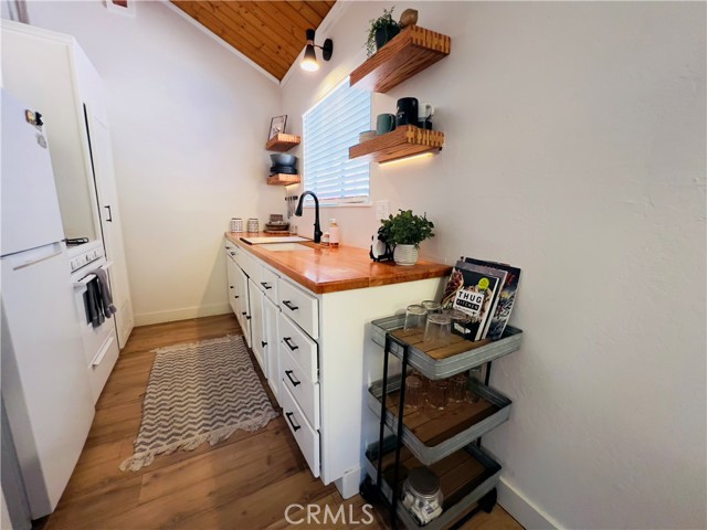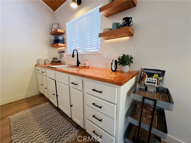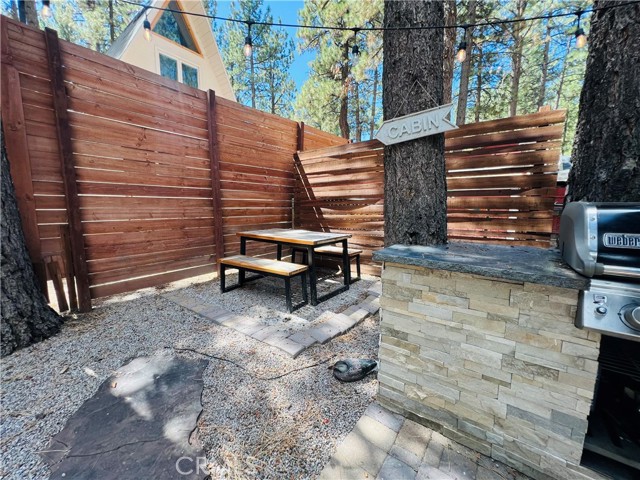 Beautifully upgraded cabin in Big Bear City, perfect as a vacation home or Airbnb investment. This charming 1 bedroom, 1 bathroom retreat features wood-style flooring, an inviting open layout, and high vaulted ceilings that create a bright and airy feel. The kitchen offers a modern touch with a butcher block countertop and updated finishes, while the cozy living area is centered around a stunning stacked stone fireplace, creating the perfect space to unwind after a day in the mountains. Step outside to enjoy the outdoor space with a BBQ, ideal for entertaining, relaxing, and taking in the fresh Big Bear air. Whether you’re looking for a peaceful weekend getaway or an income-producing property, this cabin offers comfort, charm, and great potential. Don’t miss the opportunity to own your own Big Bear escape.