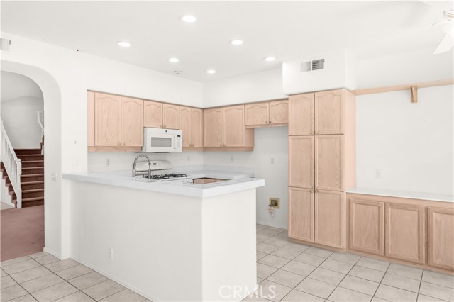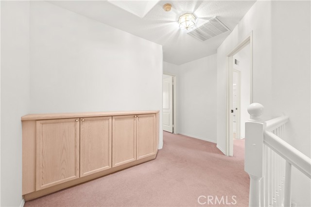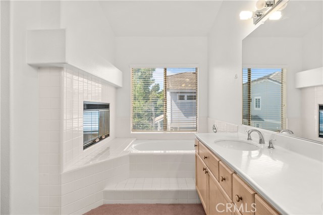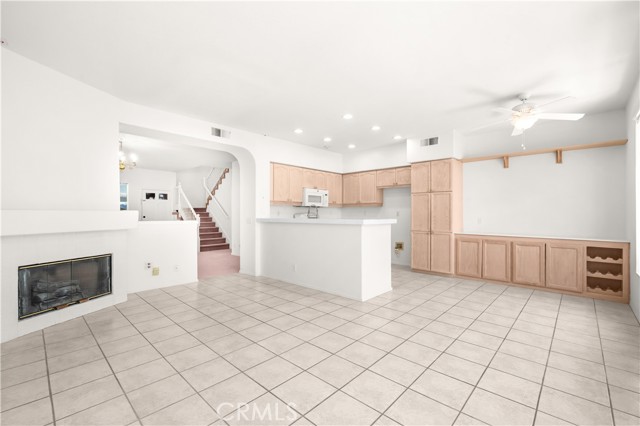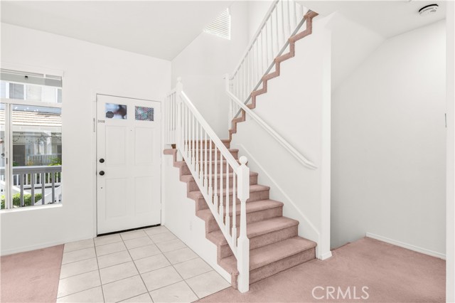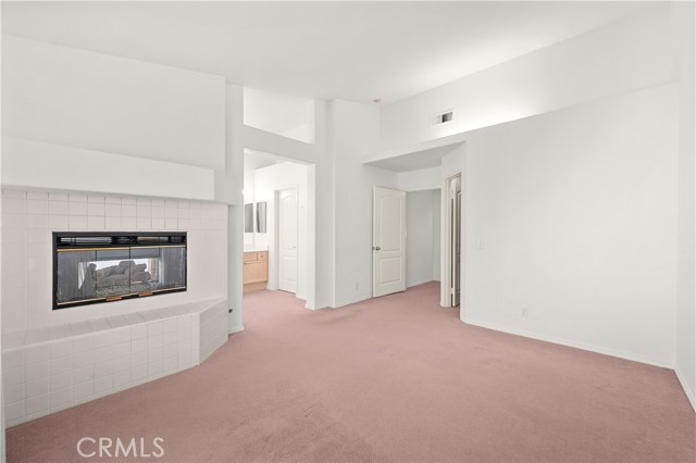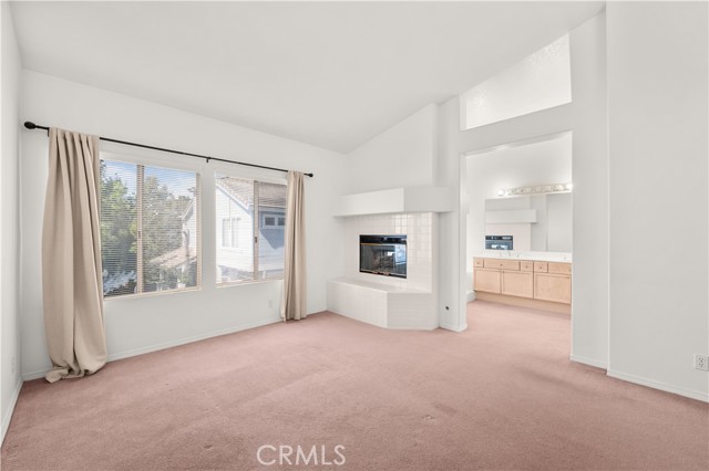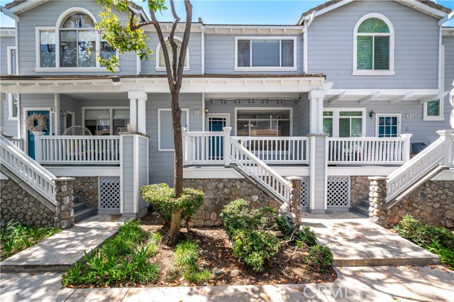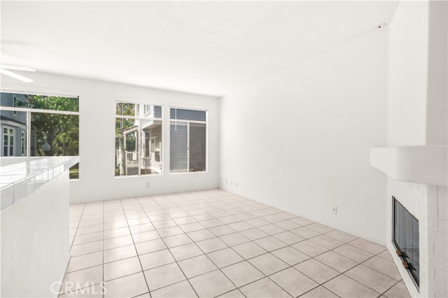 Welcome home to this spacious 3 level townhouse style condo located in the gated Huntington Condominiums community in Orange CA. From the moment you walk through the front door you'll feel right at home. The living space is open and bright with tile flooring and plush carpet throughout. The main level flows right into an open concept kitchen and dining area through an arched doorway. The kitchen features light wood cabinetry, a kitchen island with tile countertops, gas range, dishwasher and recessed lighting with tons of cabinet storage. Step out to your own private covered porch overlooking the community grounds perfect for morning coffee or just relaxing after a long day. Upstairs the skylit hallway leads you to spacious bedrooms including a primary suite that really stands out. It has its own fireplace, a spa like bathroom with a soaking tub and a generous walk in closet with plenty of built in shelving and storage throughout. The community has a pool, spa and tree lined walkways that make it feel like a resort.