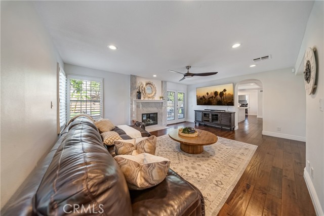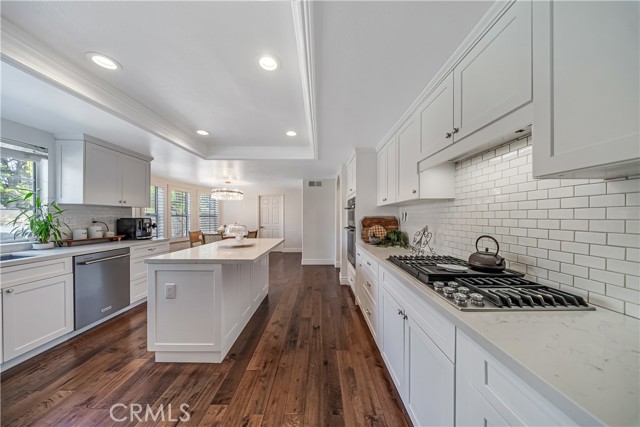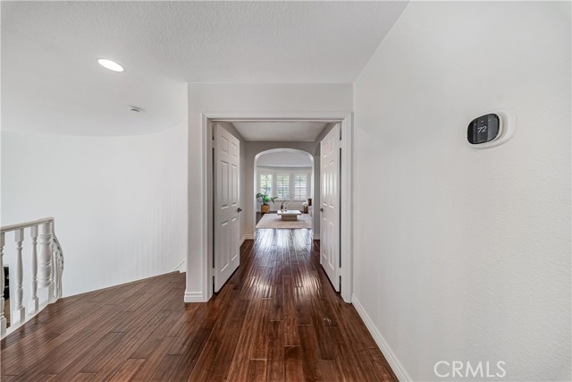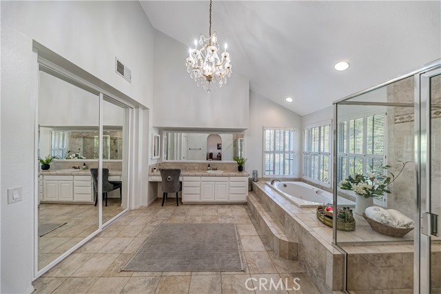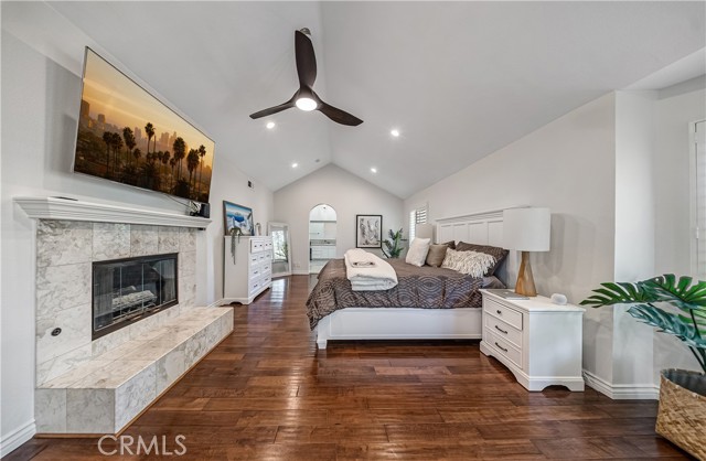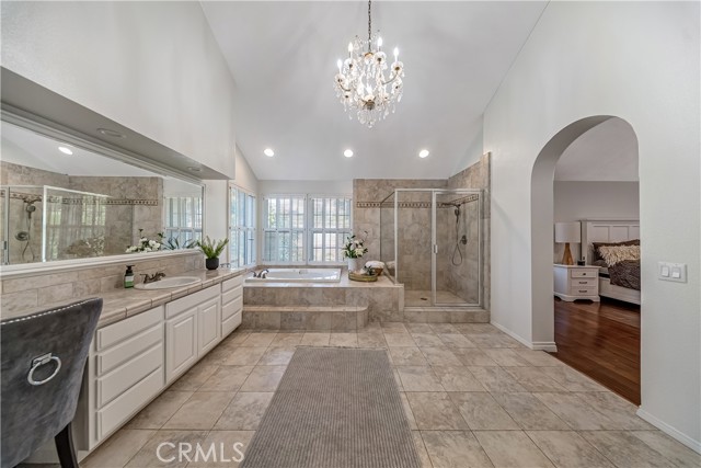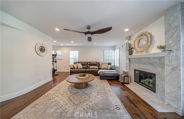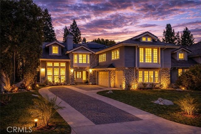 Rare opportunity to own a stunning Modern Traditional estate behind the prestigious Ridgegate community, highlighted by a sprawling, grand driveway that offers exceptional presence, ample parking, and striking curb appeal. This 4,583 sq ft home features 5 bedrooms, 6 bathrooms, lush landscaping, and fully paid-off solar panels (10 kWh system with 25 panels). Blending timeless architectural charm with contemporary luxury, this light-filled residence showcases a striking exterior with detailed stonework, elegant gray siding, and a distinctive honeycomb-patterned driveway that makes a lasting first impression. Step through ornate double doors into a dramatic two-story foyer, complete with a sweeping spiral staircase. The formal living room impresses with vaulted ceilings, floor-to-ceiling windows, and a stately fireplace, creating an airy, gallery-like ambiance. Wood flooring, neutral tile, and new recessed lighting flow throughout the home. The gourmet kitchen is a chef’s dream, featuring white cabinetry, quartz countertops, a large island, and premium stainless steel appliances, including a KitchenAid package and a built-in Sub-Zero refrigerator. The dishwasher and cooktop are brand new, complemented by a gas oven and microwave. An open-concept family room offers rich hardwood floors, a marble-accented fireplace, and French doors that open to the backyard. The spacious dining area, adorned with a modern chandelier and plantation shutters, provides an elegant setting for entertaining. The main level includes a bedroom with an ensuite bath, a separate laundry room with gas and electric (240V) hookups, a guest powder room, and a 3-car garage with epoxy flooring. Upstairs, a curved staircase leads to four additional bedrooms, a loft with a fireplace, and four bathrooms. The expansive primary suite serves as a private retreat, featuring dual bathrooms, oversized walk-in closets, a sitting area, and a jetted tub beneath high ceilings, offering the rare luxury of two separate bathrooms within the suite. Additional bedrooms include ensuite options, ensuring comfort and privacy throughout. Further highlights include 400 amperage electrical panel, upgraded R30 attic insulation for enhanced energy efficiency and LOW HOA's due. The backyard offers a sprawling, lush lawn framed by mature greenery, perfect for peaceful mornings or upscale alfresco entertaining. A rare blend of elegance, scale, and modern upgrades, this home truly stands out.