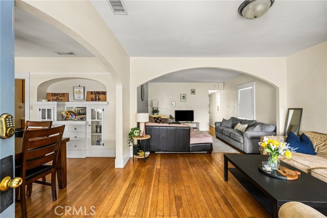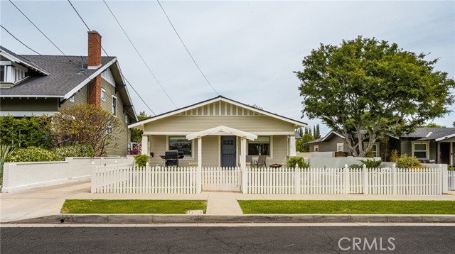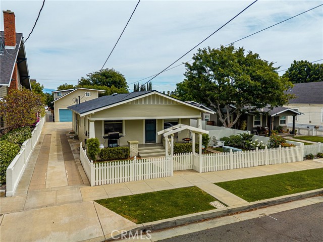 Located in the highly desirable historic district of Old Towne Orange, this charming Craftsman-style property offers timeless character, versatility, and exceptional curb appeal. Set behind a quaint white picket fence, the inviting front yard features lush grass, mature landscaping, and a welcoming front porch that captures the essence of this beloved neighborhood. The main residence showcases classic architectural details including hardwood floors, arched doorways, A/C, French doors, and custom built-ins, blending vintage charm with everyday functionality. The home offers 1,860 sq ft. with 3 bedrooms and 3 bathrooms, providing comfortable living space with a warm and inviting feel. At the rear of the property, a detached two-car garage is complemented by a remodeled 420 sq. ft. upper-level unit featuring 1 bedroom and 1 bathroom—ideal for rental income, guests, or extended family. A long driveway provides ample off-street parking, a rare and valuable feature in the area. Additional highlights include newly painted and newer roofs on both the main home and accessory unit, as well as sidewalks and a classic neighborhood streetscape that enhances the property's appeal. A unique opportunity to own a character-rich property with income potential and close proximity to historic Orange Plaza, Chapman University, local dining, parks, and convenient freeway access, this home delivers both lifestyle and location.