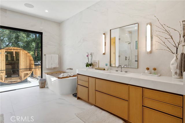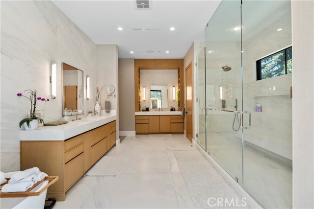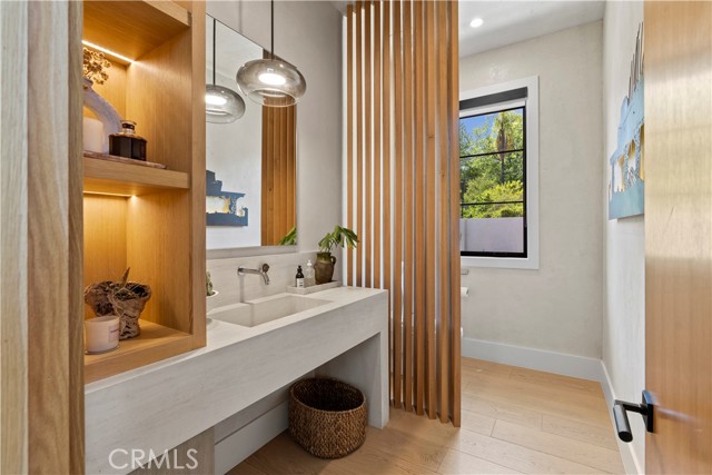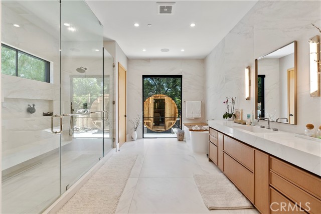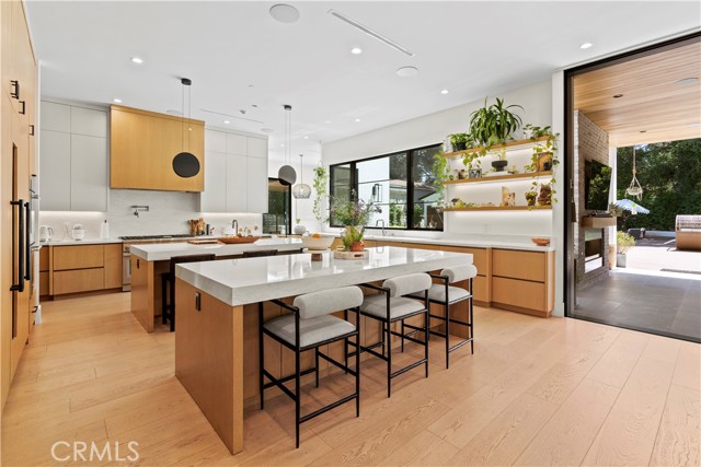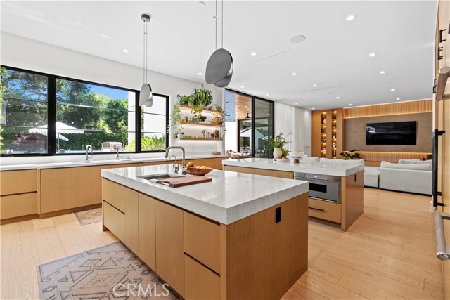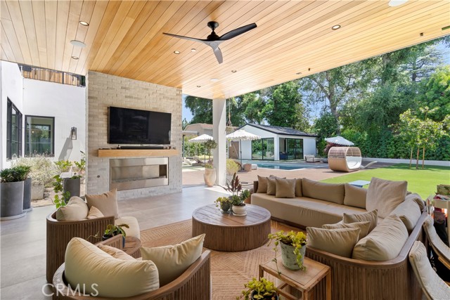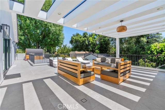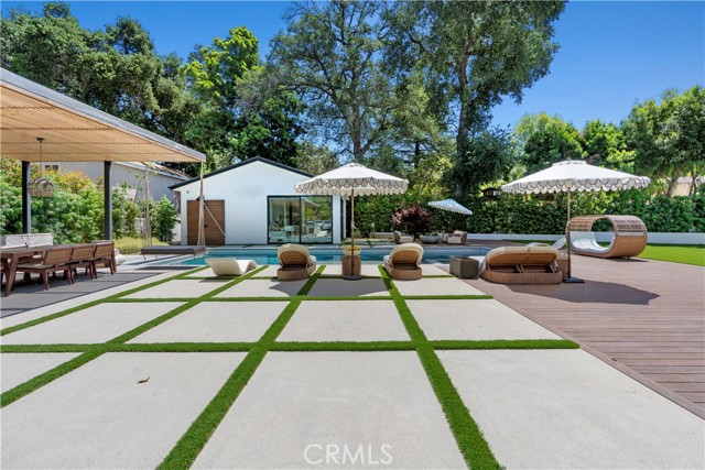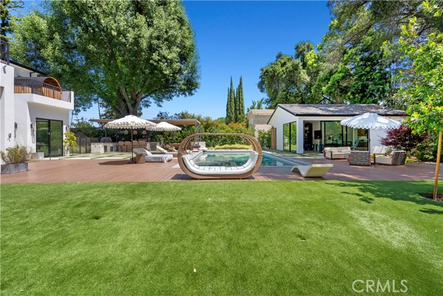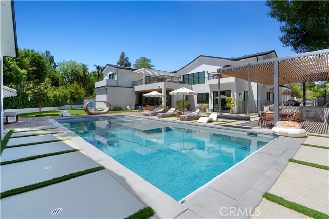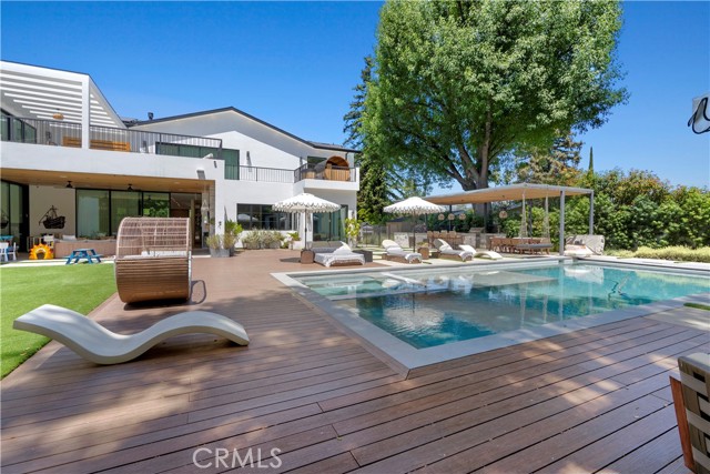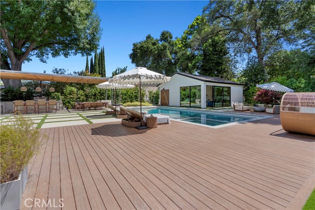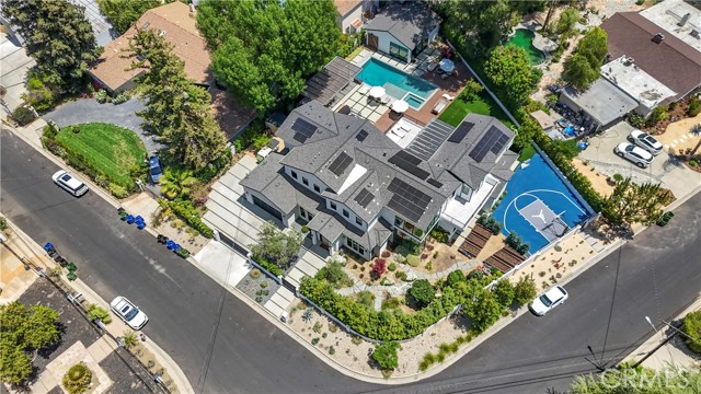 AVAILABLE 06/15/26 - Set on a coveted corner lot south of the Boulevard in Woodland Hills, this extraordinary newer-construction estate is a masterclass in modern luxury, seamlessly blending refined design, advanced technology, and resort-inspired living. From the moment you enter, the home reveals a level of craftsmanship and intention rarely seen—where every finish, feature, and system has been thoughtfully curated. The heart of the home is a stunning chef’s kitchen outfitted with Thermador built-in appliances, complemented by a fully equipped secondary “dirty kitchen” designed for effortless entertaining. With dual dishwashers, two refrigerators, three full sinks, and a reverse osmosis beverage station with instant hot water, the space is as functional as it is beautiful. Technology is fully integrated yet elegantly discreet, with a Control4 smart home system, automatic blinds throughout, and enterprise-grade Wi-Fi powered by a dedicated server and multiple extenders. Over 30 in-wall speakers create a seamless multi-zone audio experience, while a custom 105-inch home theater with 8K projection, Dolby Atmos surround sound, acoustic paneling, and bespoke recliner seating delivers a true cinematic escape. The home continues to impress with custom cabinetry in every room, multiple hidden safes, a private gym, and a host of thoughtful luxury details—including Toto resort-style washlets for elevated everyday living. Designed to rival a five-star resort, the outdoor spaces are nothing short of spectacular. A sprawling 46-foot resort-style pool and spa with Baja shelf, Wi-Fi controls, and an automatic hard-shell cover offers year-round enjoyment. An upstairs wellness retreat features a cold plunge, spa, and sauna, creating a private sanctuary for relaxation and rejuvenation. Entertain effortlessly beneath the open pergola with a professional Napoleon BBQ, commercial-grade pizza oven, and dual burner, all set against the backdrop of a cozy outdoor gas fireplace. Lush, mature hedging ensures privacy, while raised, pre-irrigated garden beds and a smart irrigation system add both beauty and ease. A basketball court completes the lifestyle experience. Security and infrastructure are equally impressive, with 20+ Ring cameras, a full alarm system, and a commercial-grade whole-house water filtration system. This is more than a home, it’s a fully realized property, offering unparalleled comfort, sophistication, and the very best of California indoor-outdoor living.