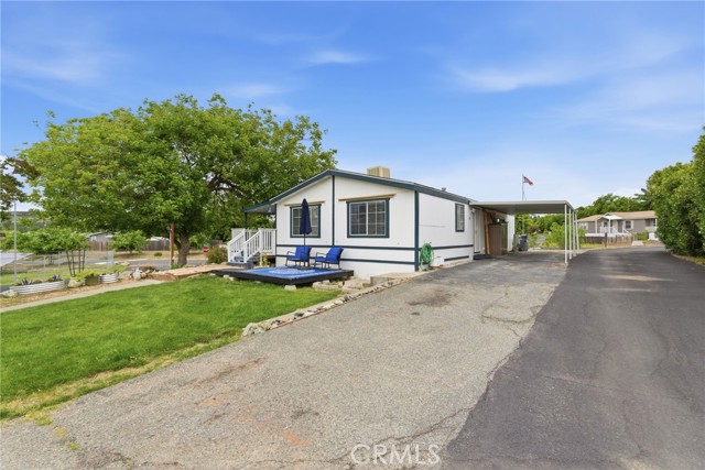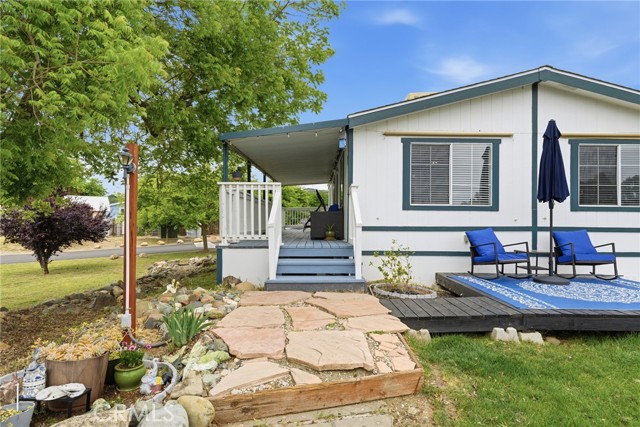 Welcome home to this beautifully refreshed residence nestled in the Foothills Community, where comfort, style, and one of the best lot locations the community has to offer come together. Perfectly positioned on a premium corner lot right, this home offers a rare sense of privacy within the park. Set apart from neighboring homes with open space, scenic views, and a generously sized yard that creates a more spacious, less crowded feel. From the moment you arrive, you’ll appreciate the inviting curb appeal featuring a newly built front deck, fresh exterior paint on the porch, and a charming lawn and garden bed area which is ideal for relaxing or enjoying the peaceful surroundings. Inside, the home has been thoughtfully updated with newer carpet, updated baseboards, and fresh finishes throughout. The kitchen offers updated flooring, modern light fixtures, and a newer refrigerator, creating a clean and functional space for everyday living. A stylish barn door adds both character and convenience, maximizing space while giving the home a trendy touch. The bathroom has been refreshed with updated tile and a newer sink, continuing the move-in ready feel. Additional upgrades include updated lighting and a ceiling fan for added comfort, along with the peace of mind of a newer roof. Located within the highly desirable Durham Unified School District, the home also offers convenient school bus service directly to the community. Whether you're looking for low-maintenance living or a cozy place to call home, this property stands out not only for its thoughtful updates, but for its prime, private location that truly sets it apart.