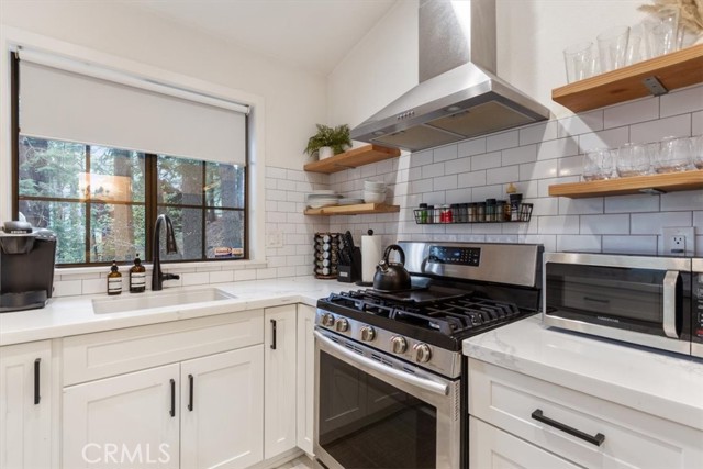 Step inside and instantly feel at home in this light-filled mountain retreat, where an open-concept floor plan is bathed in natural light and designed for both comfort and connection. The inviting living space centers around a cozy fireplace, creating the perfect setting for relaxing evenings, while elegant French doors open to a spacious deck overlooking serene forest views—an ideal backdrop for morning coffee or unwinding at the end of the day. The fully remodeled kitchen blends style and functionality, featuring sleek quartz countertops, newer stainless steel appliances, and soft-close cabinetry that adds a touch of modern sophistication. Throughout the home, newer laminate flooring enhances the fresh, contemporary feel while providing durability and easy maintenance. Downstairs, you’ll find two cozy, updated rooms that offer flexibility for guests, a home office, or additional living space, along with a conveniently located laundry area in the hallway. Outside a newer paved / concrete driveway providing parking for two vehicles adding to the home’s everyday convenience. Whether you’re searching for a full time residence a peaceful vacation getaway or a smart investment opportunity this property delivers a perfect blend of mountain charm, versatility, and longterm value.